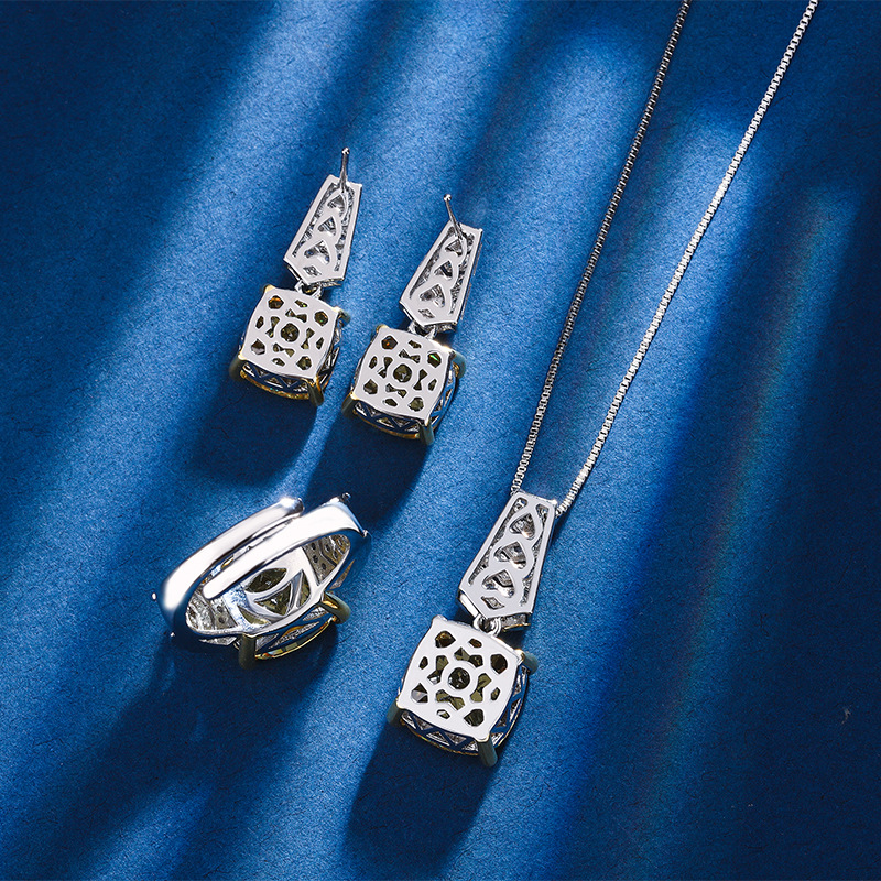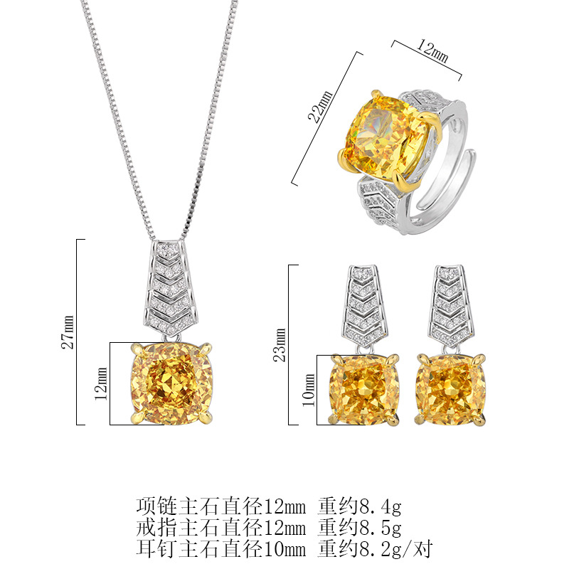 2024 nuevo Zhuang Sheng joyería diamante de alto carbono hielo flor corte cobre incrustaciones diamante amarillo luz traje de lujo hembra 12*12*10*10