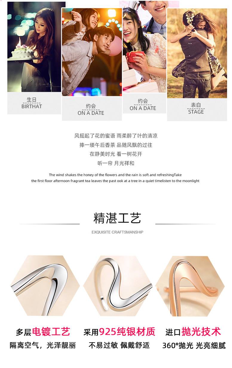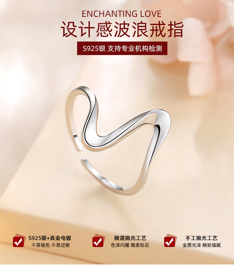 Anillo de onda Anillo de plata esterlina 925 para mujer Nicho de mujer de alto grado ligero diseño de lujo anillo de línea geométrica simple
