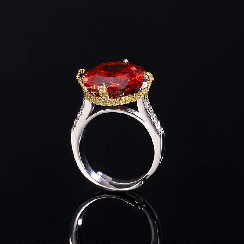2024 nueva joyería Zhuang Shengsheng, fondo de cobre, simulación chapada en oro, nido de pájaro cortado, tesoro de color, anillo retro en forma de huevo femenino 14*16