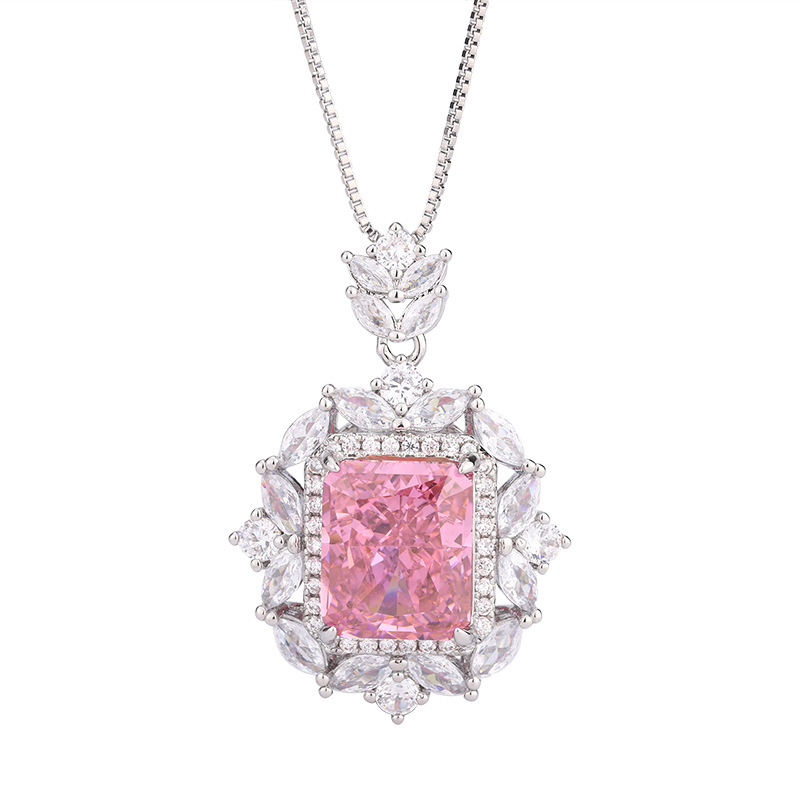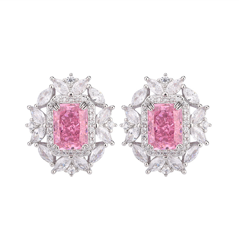 Nueva joyería de Zhuang Shengsheng, diamante con alto contenido de carbono, flor de hielo, diamante rosa profundo, incrustaciones de cobre, traje de moda de alta gama 10*12-6*8