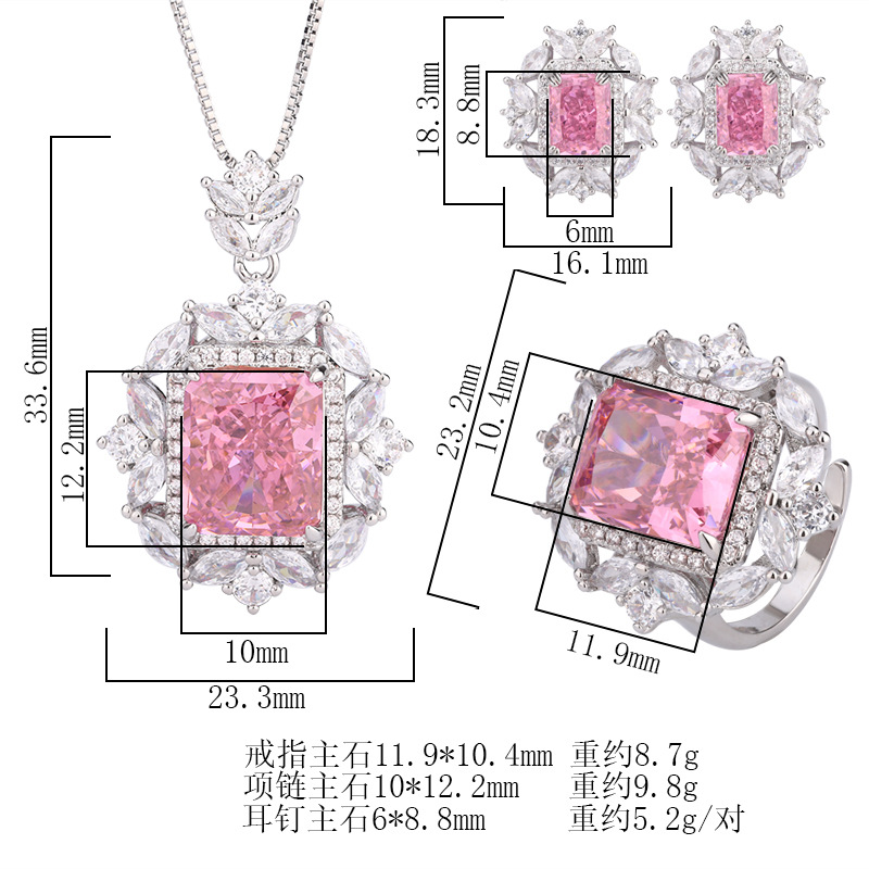 | Colores | Colgante de diamante rosa profundo cortado con flor de hielo con cadena,Anillo de diamantes de polvo profundo cortado con flores de hielo,Pendientes de diamante rosa profundo cortados con flores de hielo |