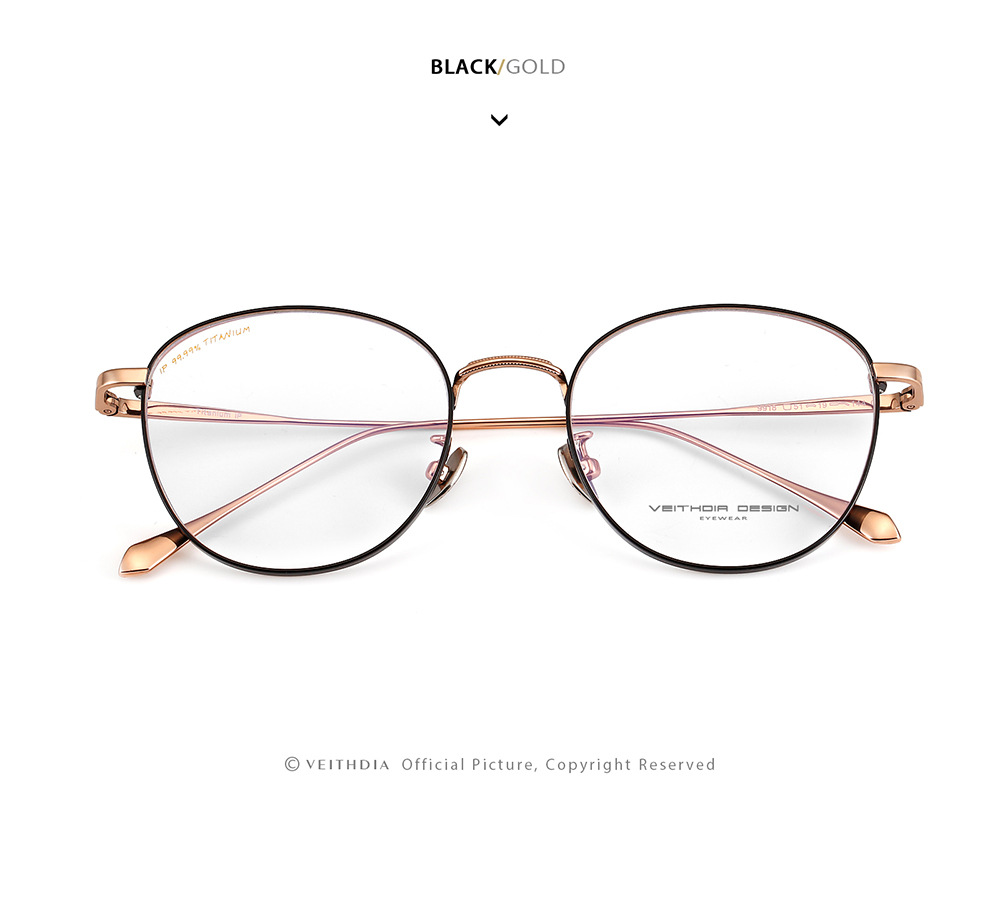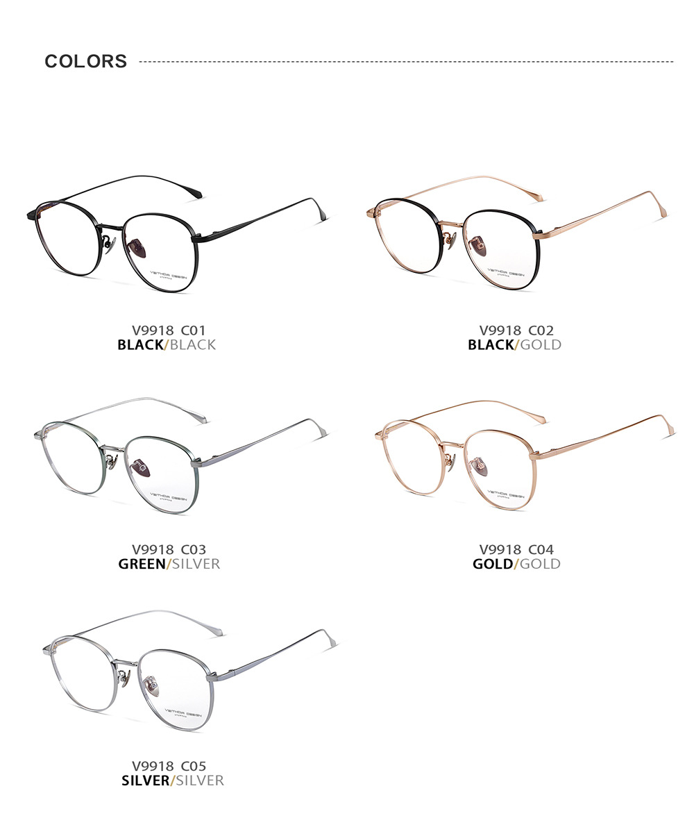 Marco de espejo de miopía óptica de titanio puro para hombres y mujeres retro redondo simple con grado transfronterizo punto 9918
