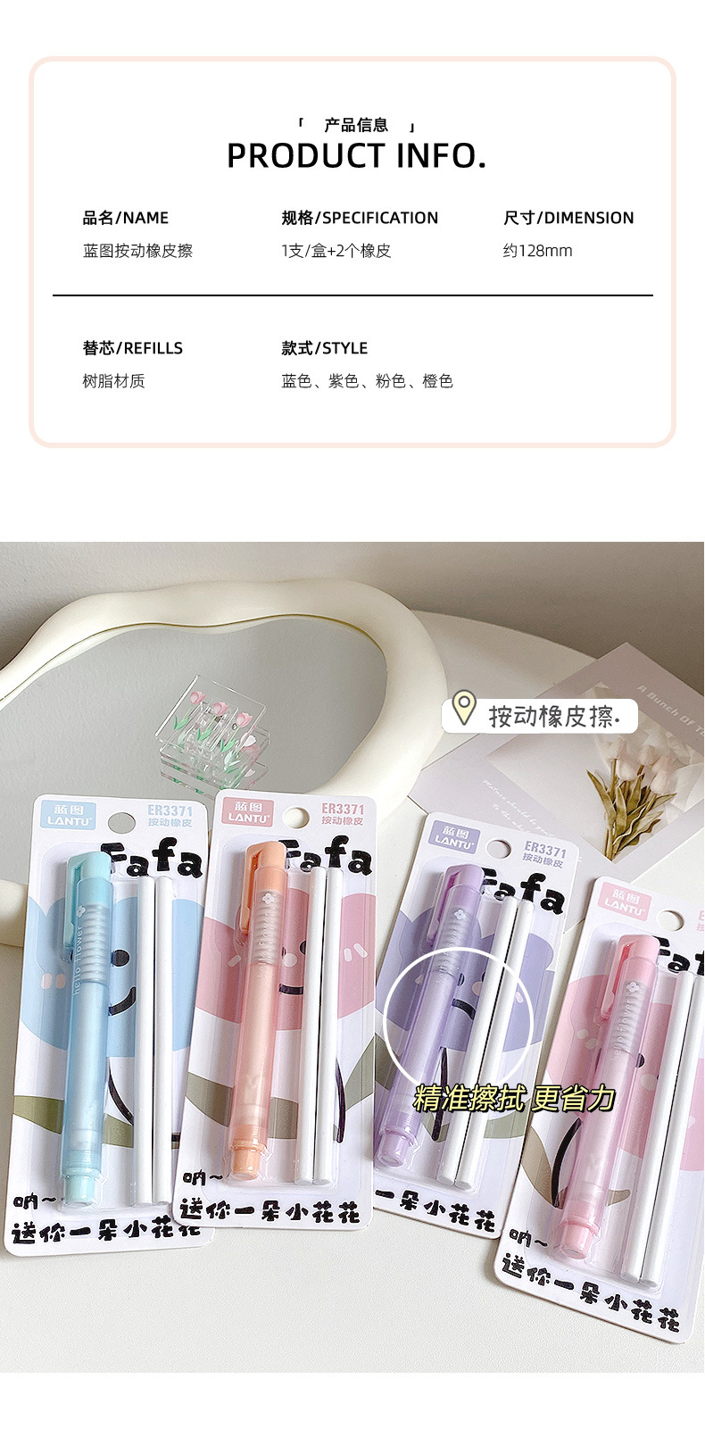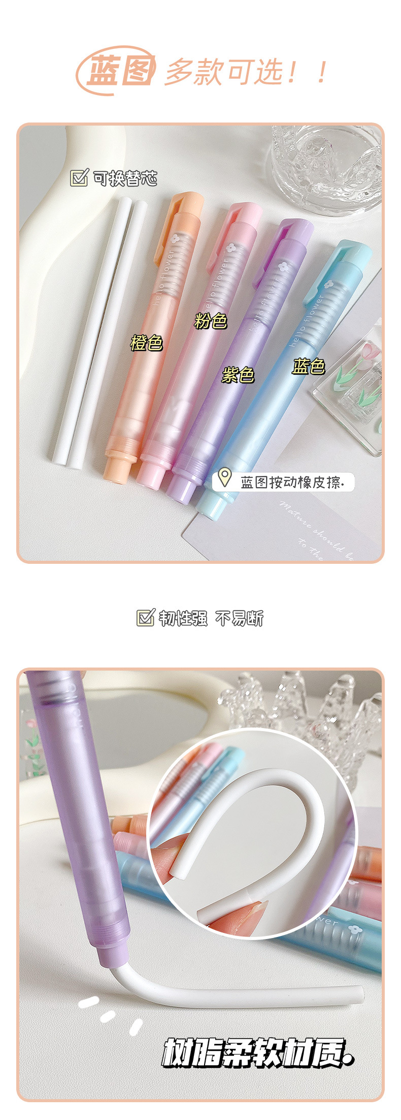 ER3371 Presione el borrador para sacar automáticamente el borrador del núcleo, el borrador tipo bolígrafo se puede reemplazar por el reemplazo, papelería creativa para estudiantes