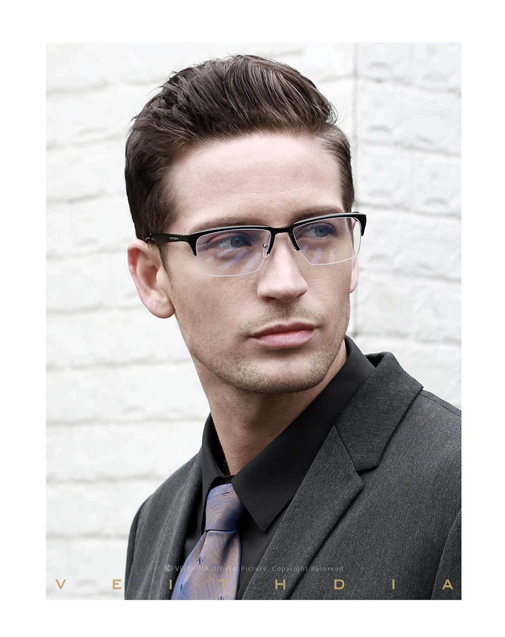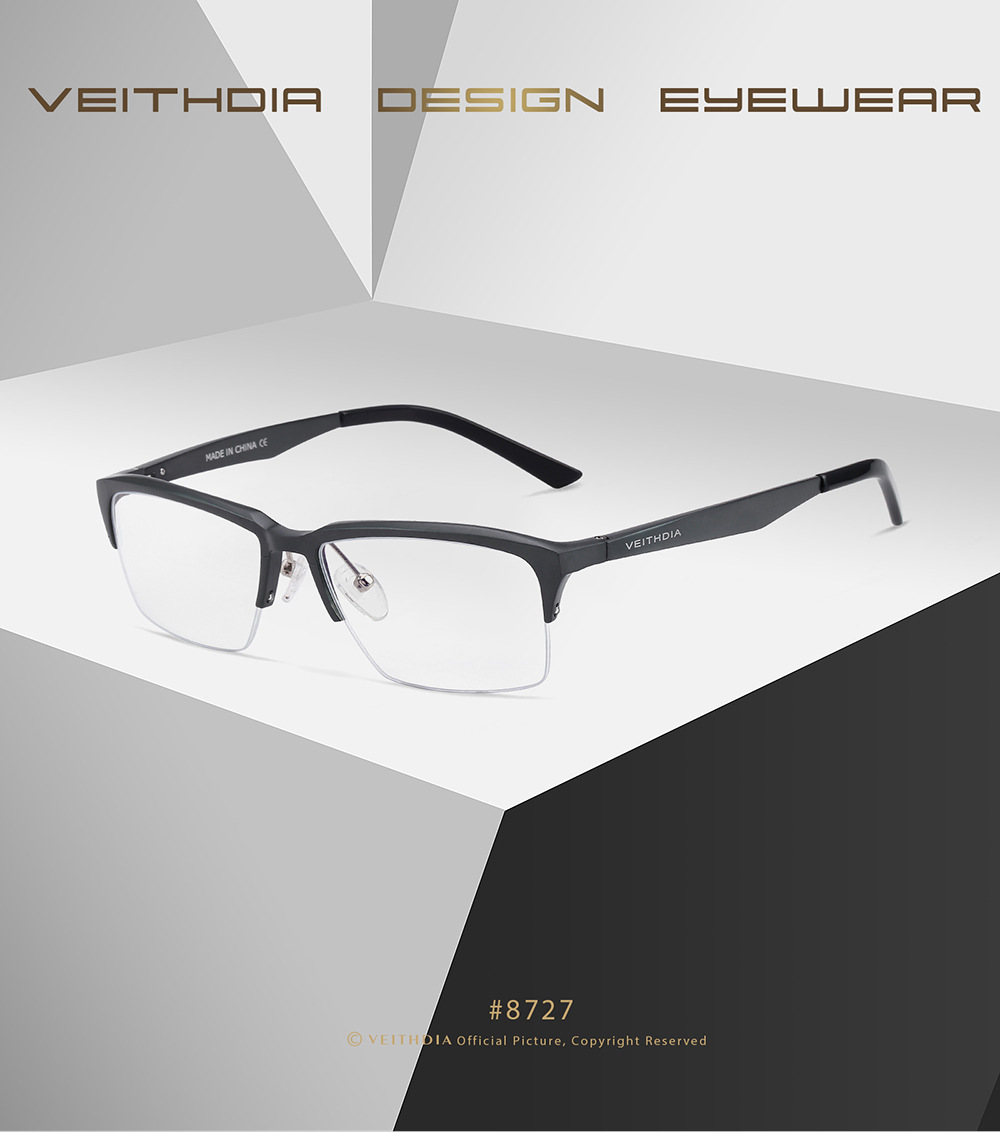 Marco óptico Medio marco marco de lente de miopía de aluminio y magnesio para hombres a prueba de luz azul cuadrado simple negocio cómodo 8727