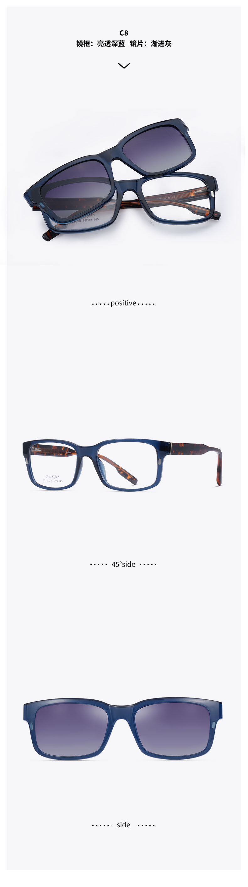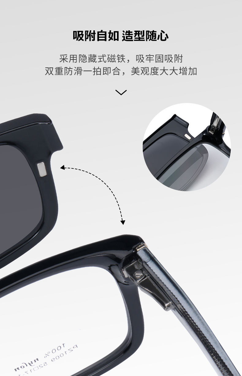 El polarizador magnético de protección solar de moda PZ1010 se puede equipar con gafas anti-luz azul de miopía, gafas de sol de protección solar de calle al aire libre