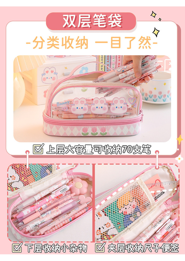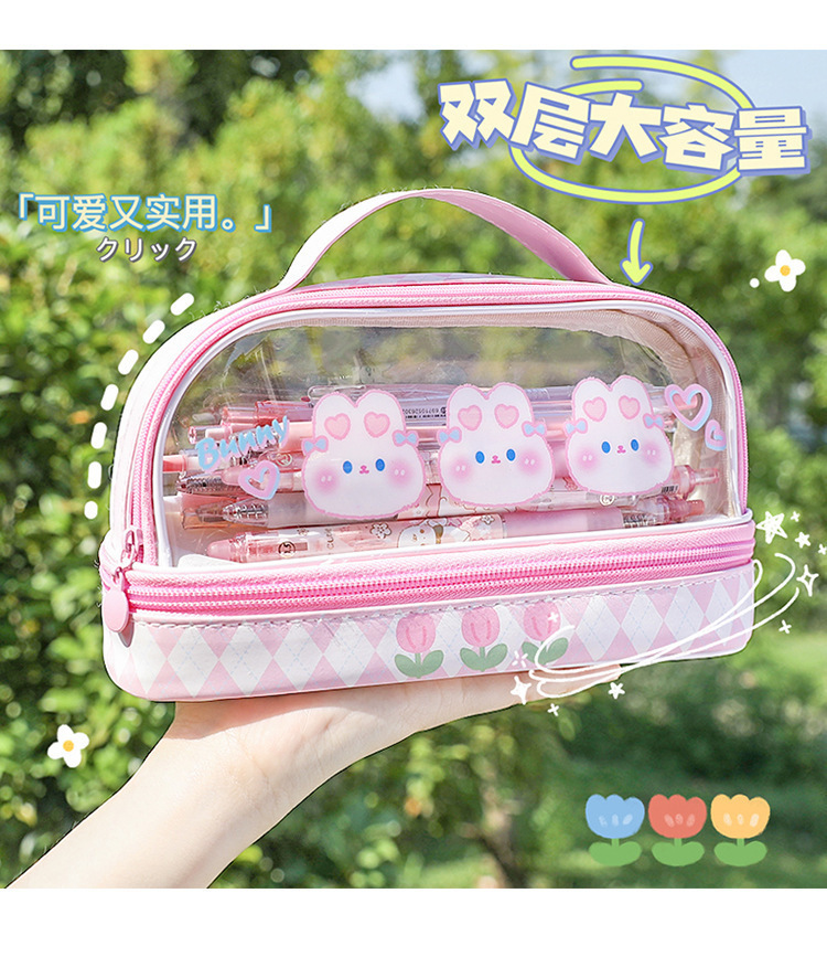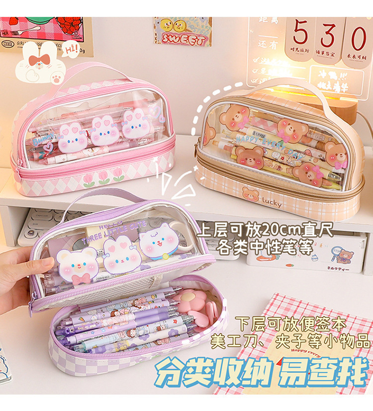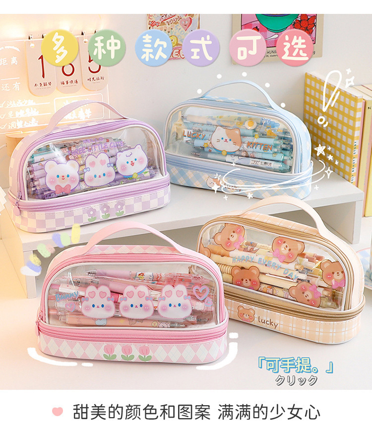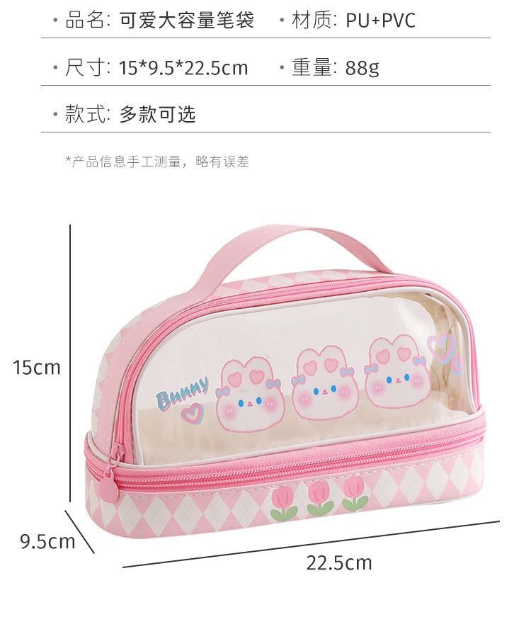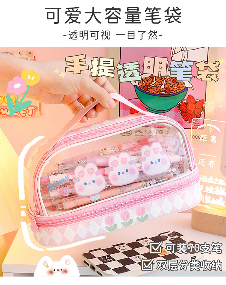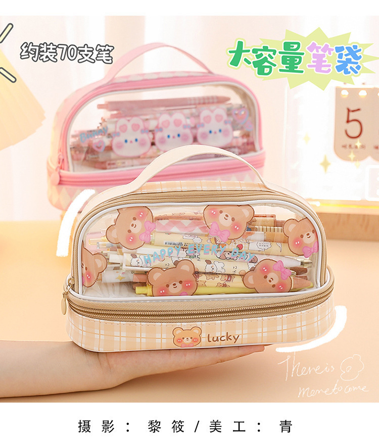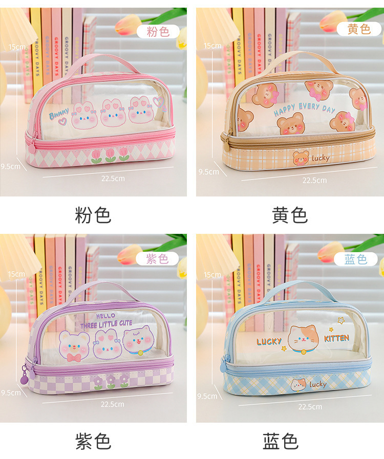 Estuche para lápices portátil para estudiantes, bolso de almacenamiento de gran capacidad de dibujos animados transparente, bolso de papelería simple multifuncional impermeable lindo