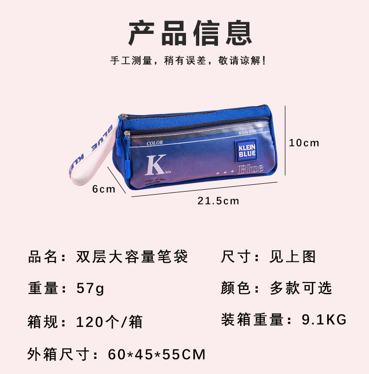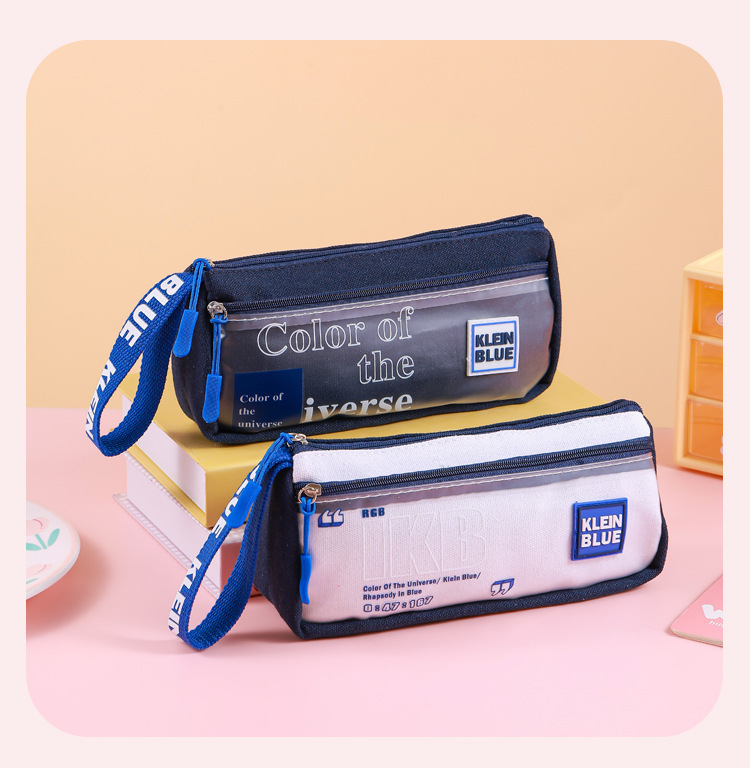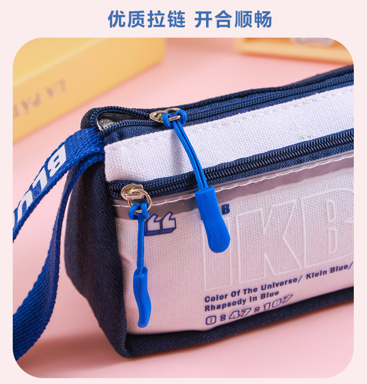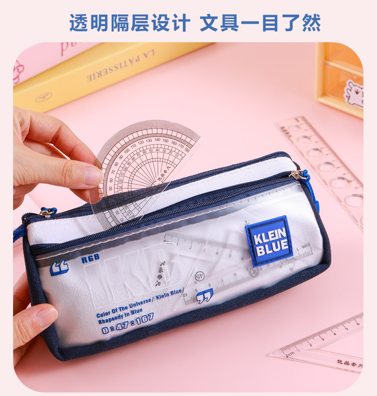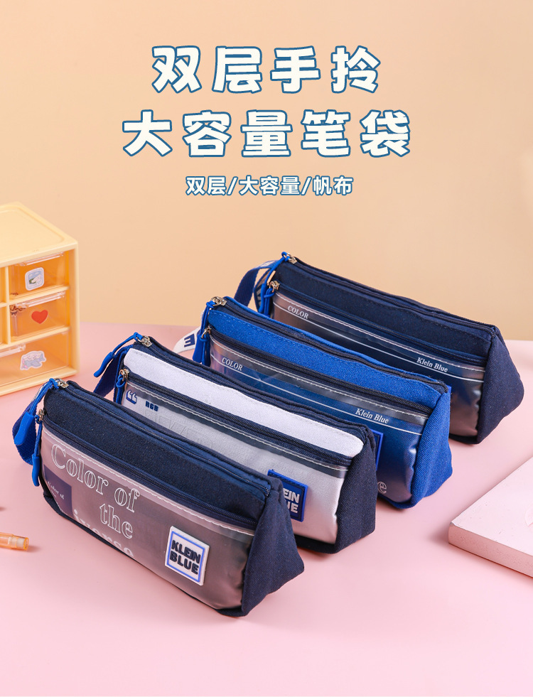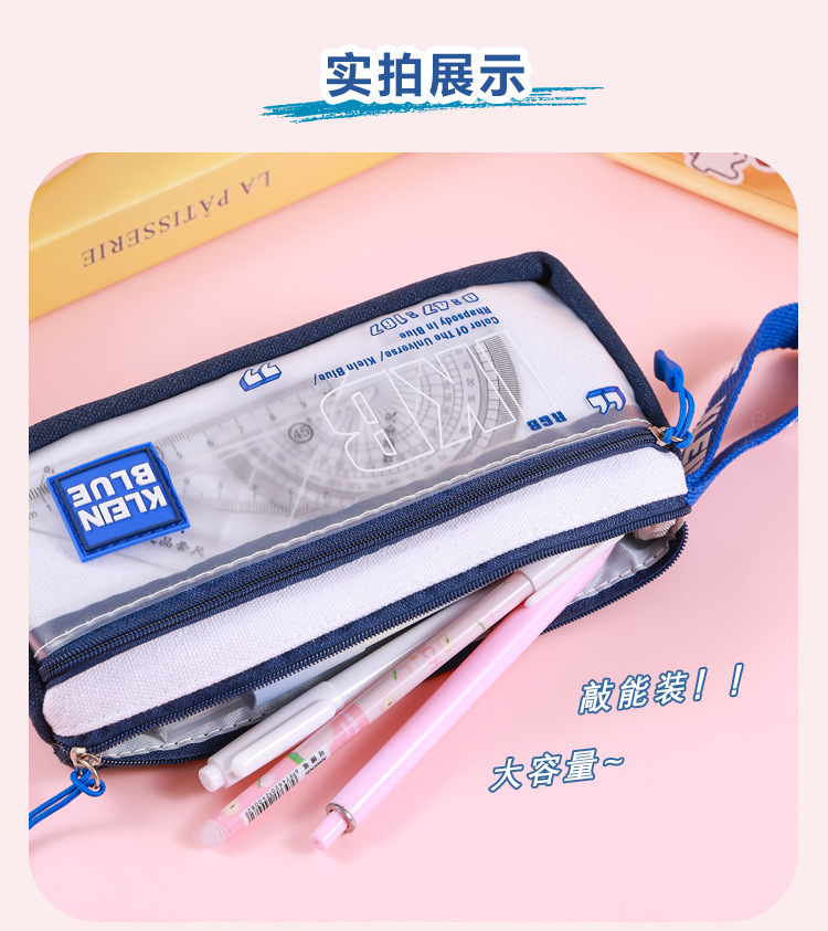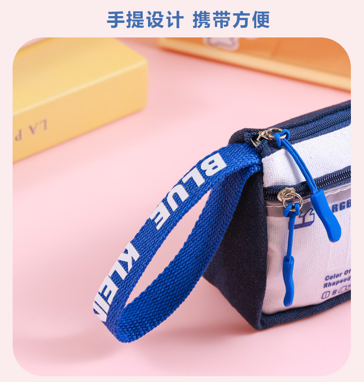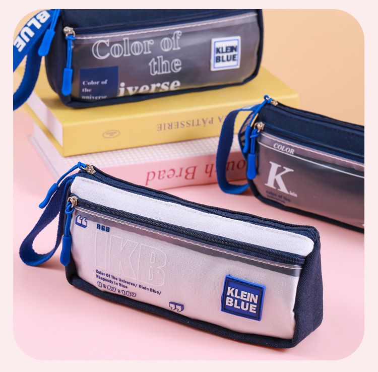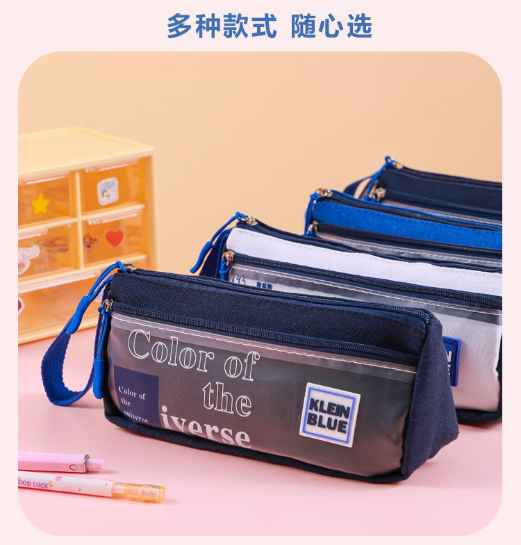 Estuche para lápices de gran capacidad para niños Klein Blue Caja de papelería para estudiantes de varias capas simple y de alto valor Bolsa de papelería para estudiantes sucios