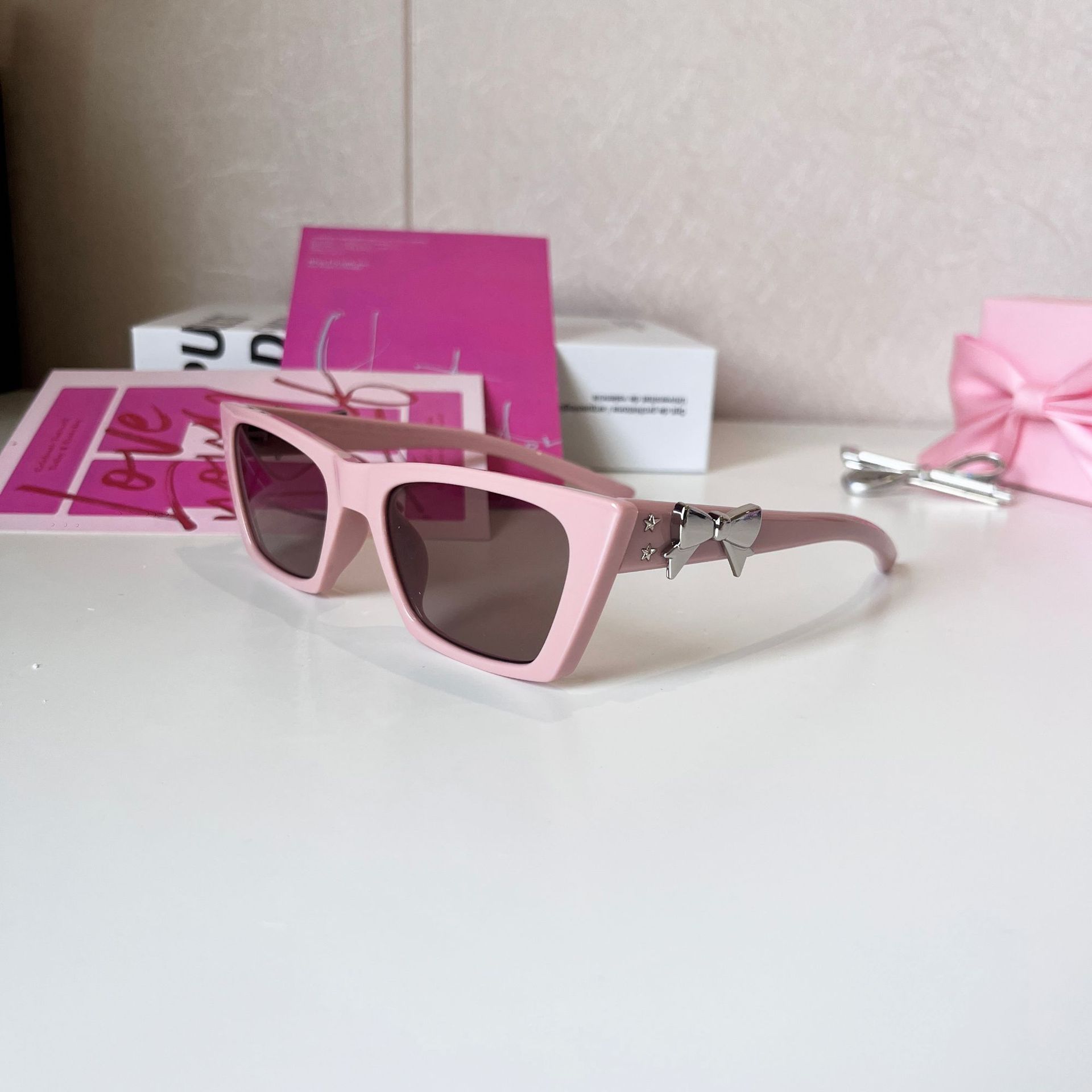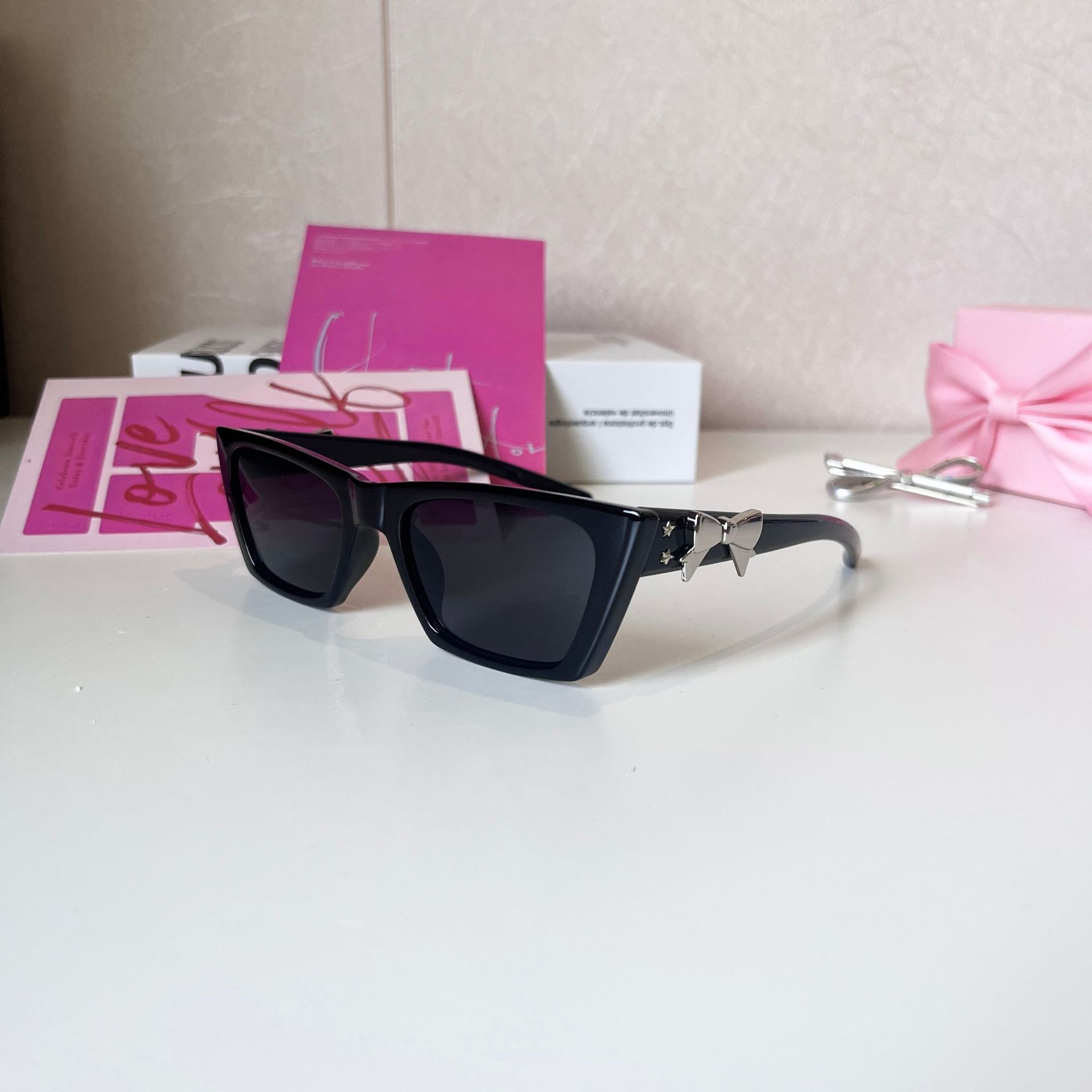 24 nuevas gafas de sol coreanas negras delgadas y de alta gama Y2 con lazo K gafas de sol Douyin Red anti-ultravioleta