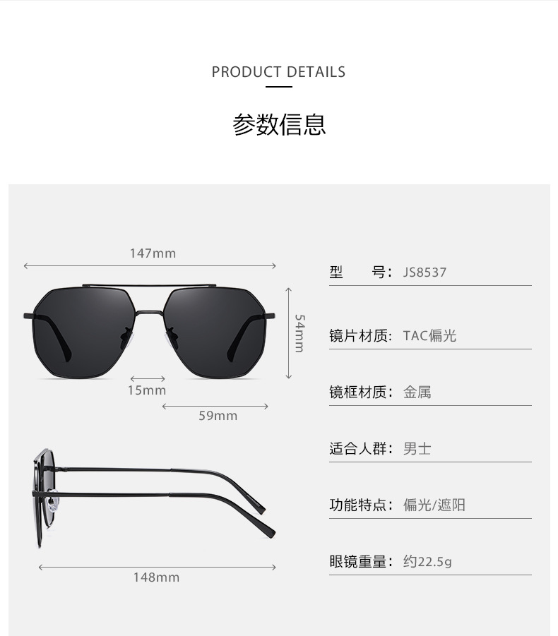Gafas de sol tiktok gafas de sol polarizadas de los hombres JS8537 gafas de sol de protección solar de colores gafas de sol de conductor femenino