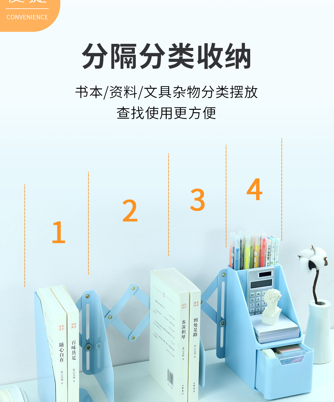 Estante de pie retráctil para libros Estante de escritorio grande para estudiantes