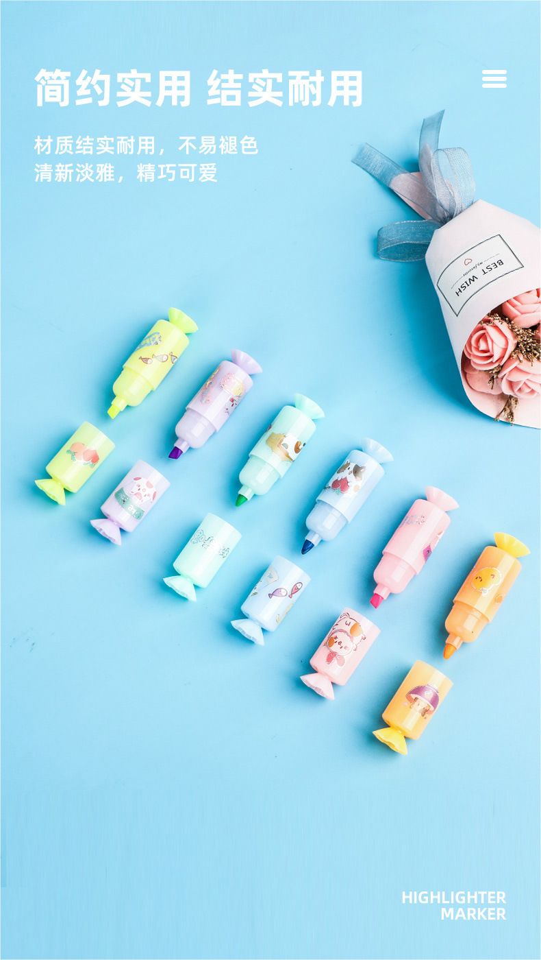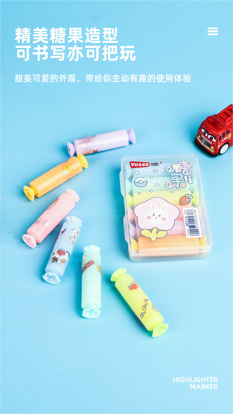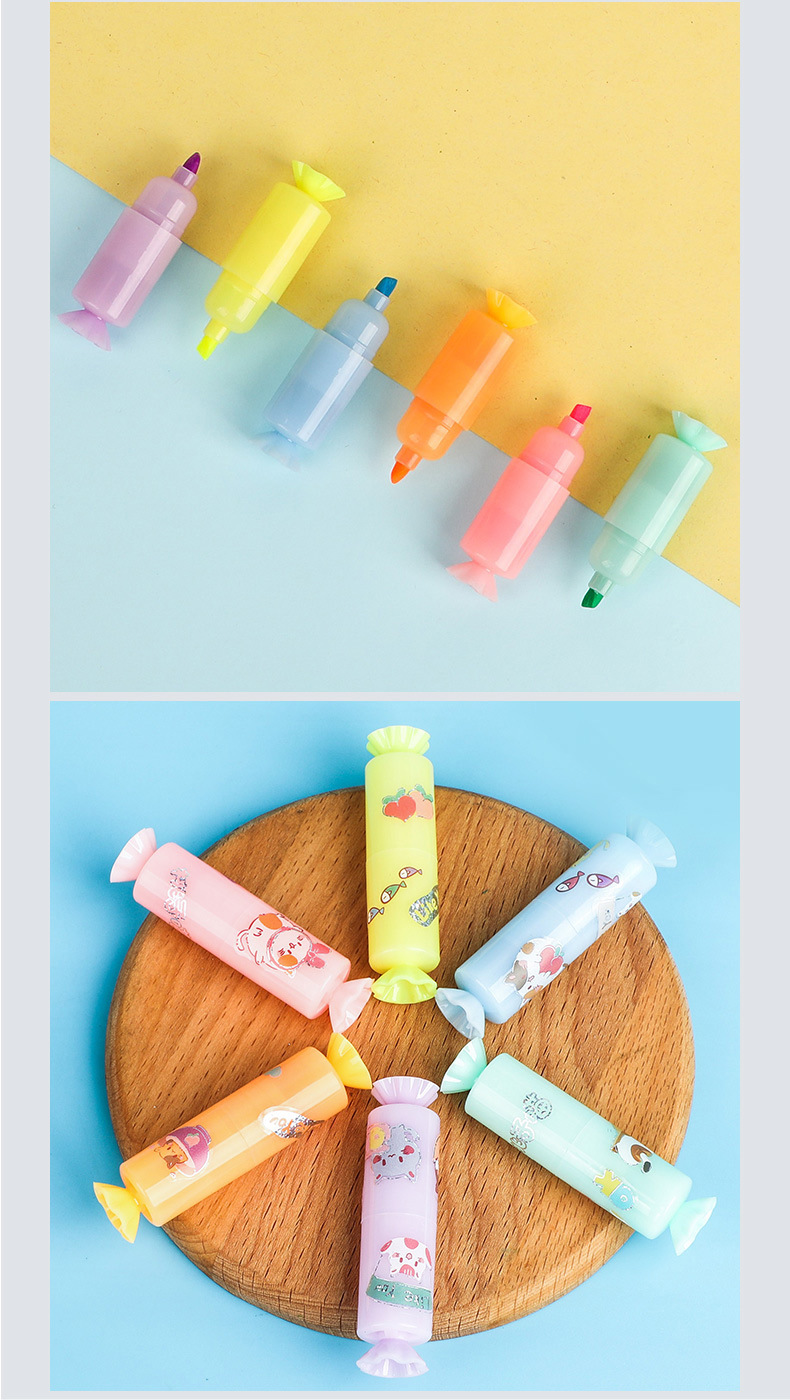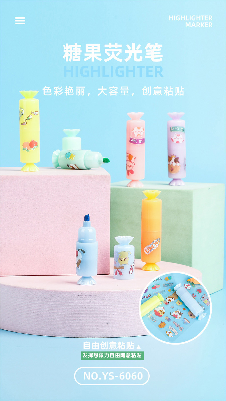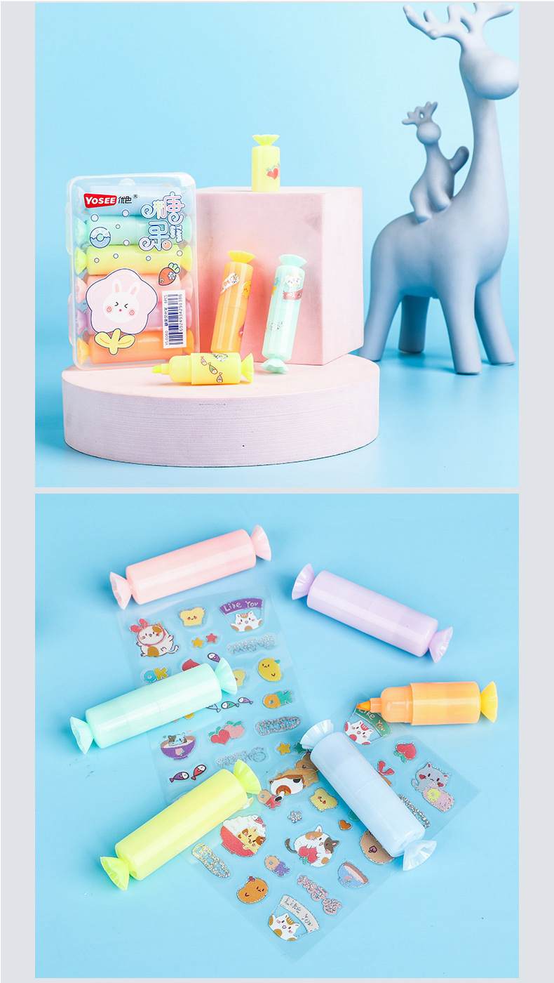 YS6060 Caramelo de dibujos animados estilo highlighter suministros escolares estudiante marcador con lindo DIY pegatinas