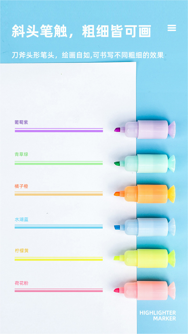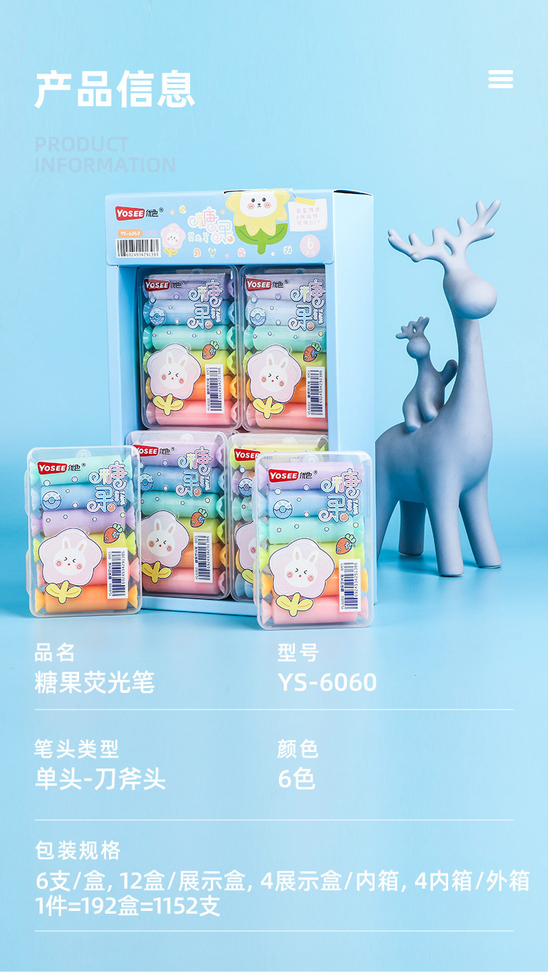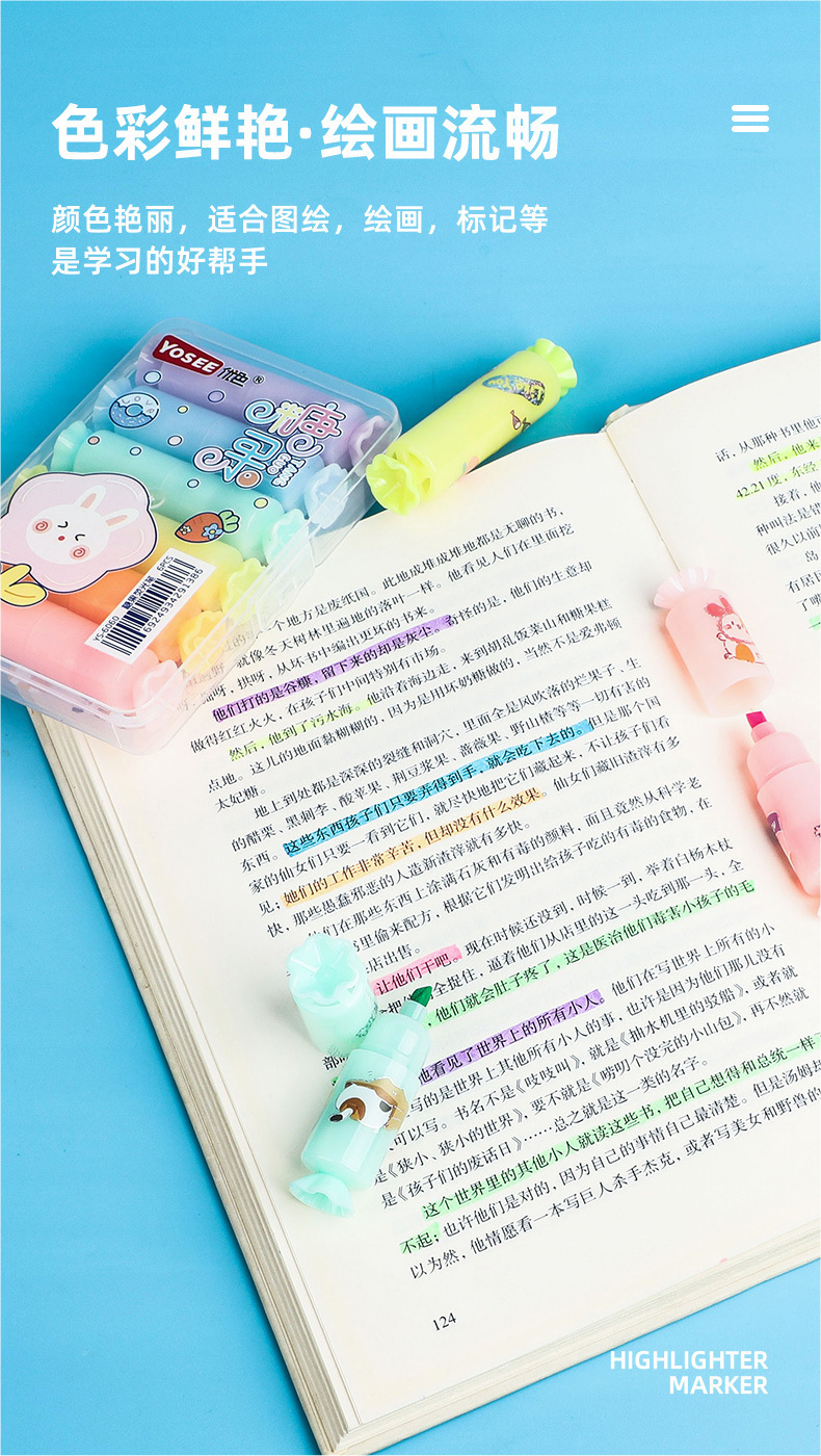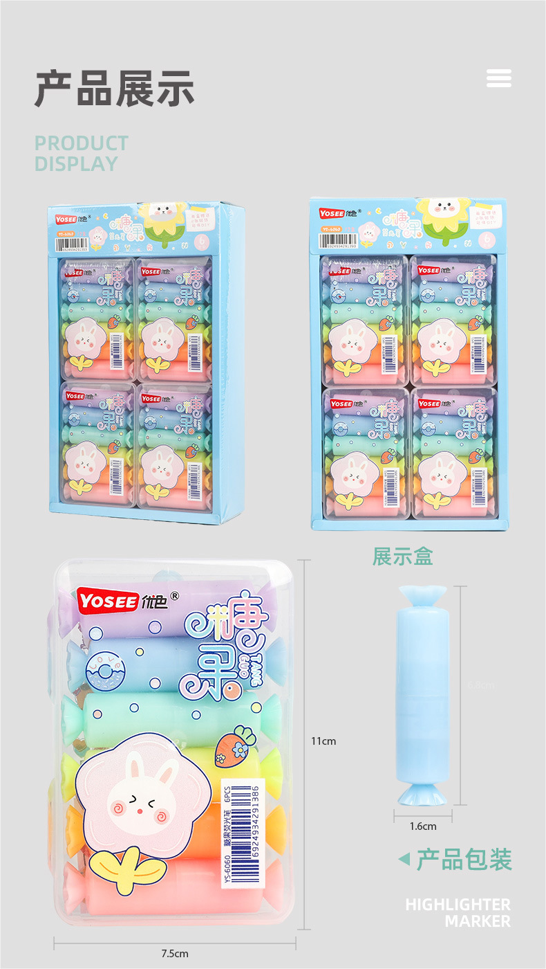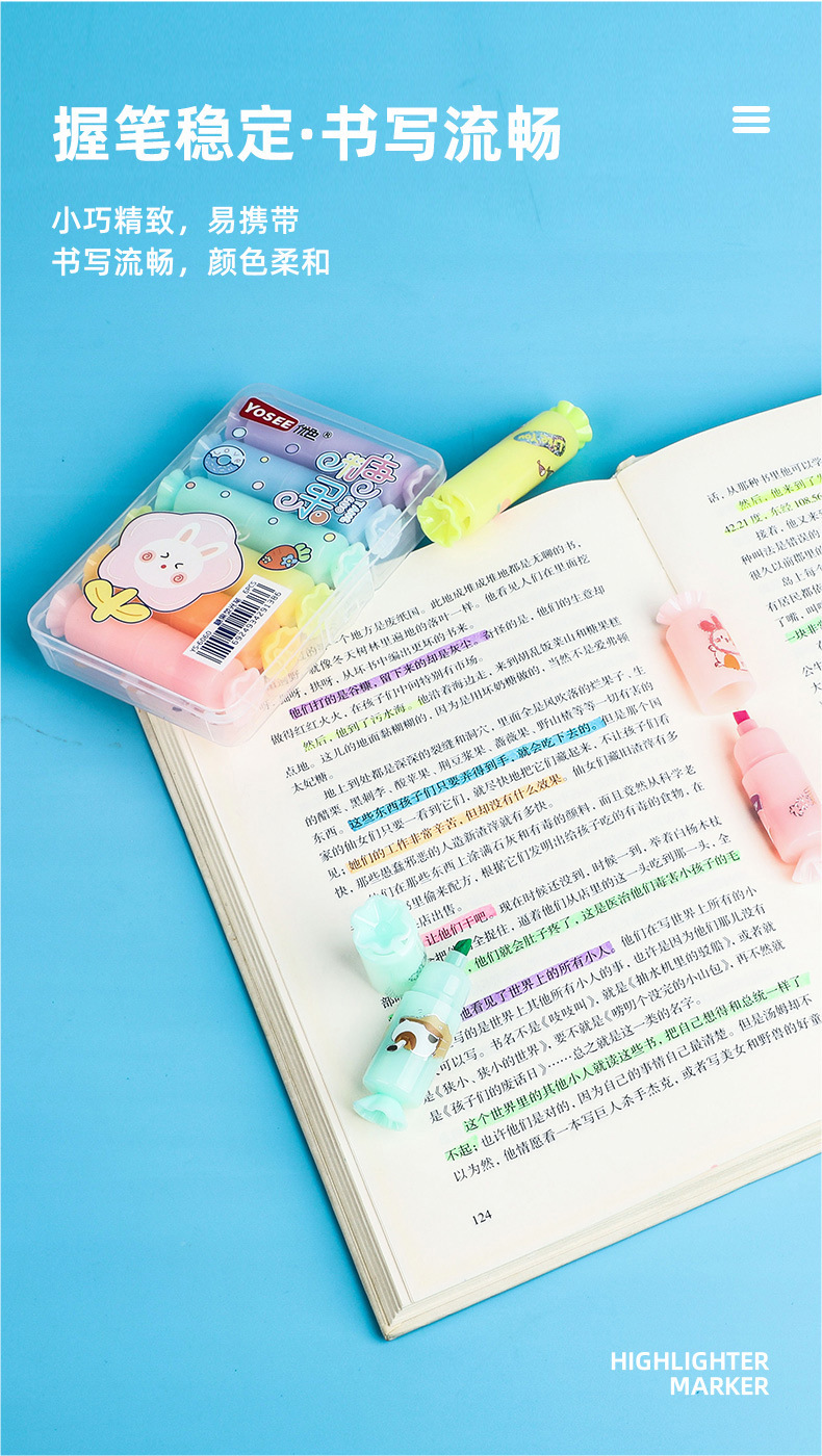 YS6060 Caramelo de dibujos animados estilo highlighter suministros escolares estudiante marcador con lindo DIY pegatinas