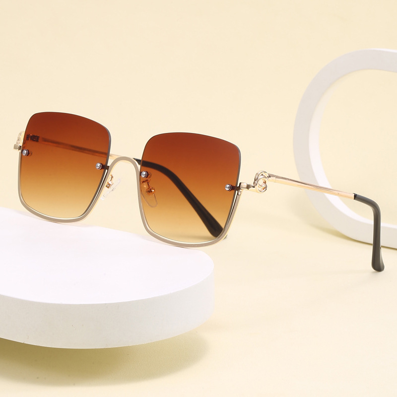 Gafas de sol de color marrón retro Gafas de sol finas de alta calidad ins Gafas de sol de maquillaje cuadrado de medio marco inferior
