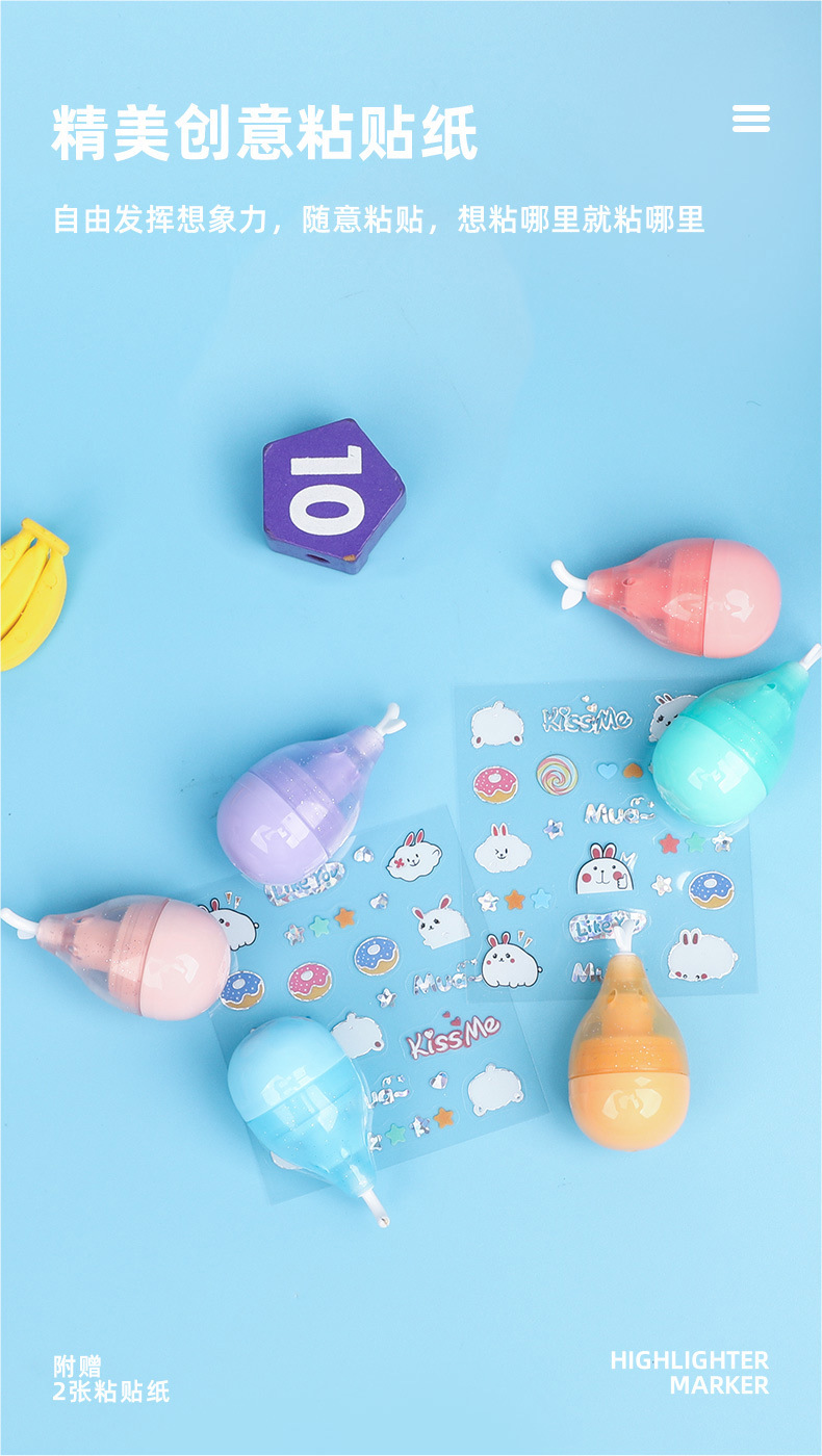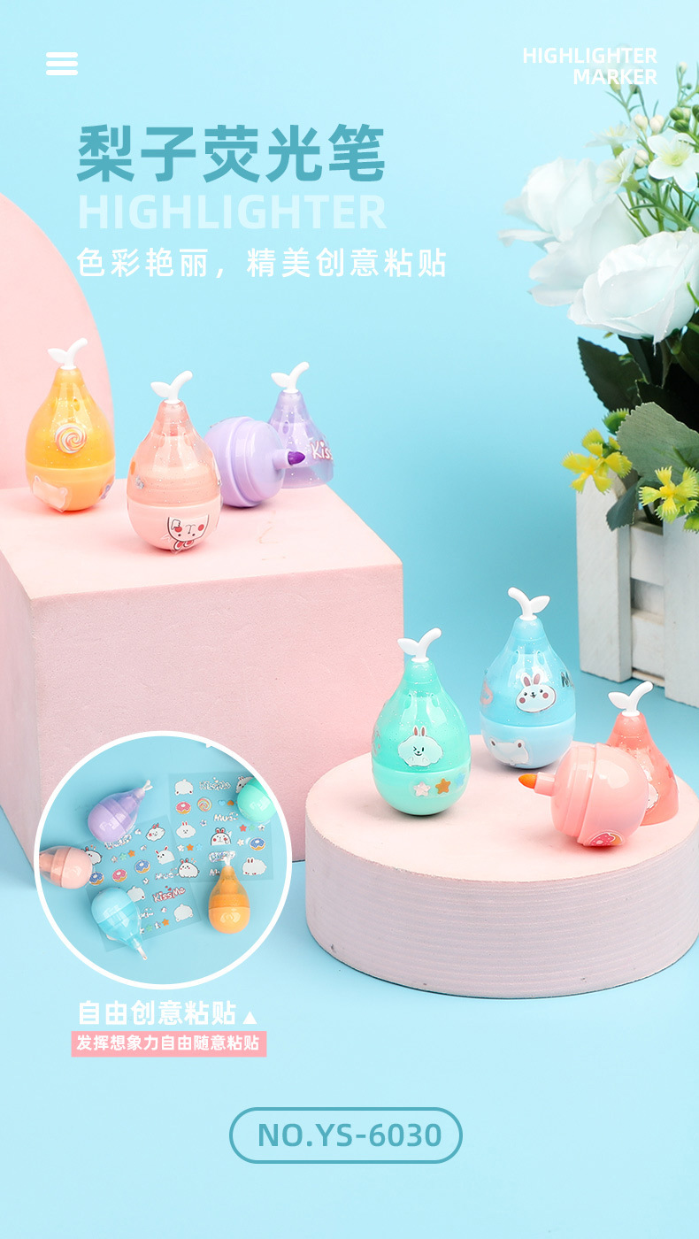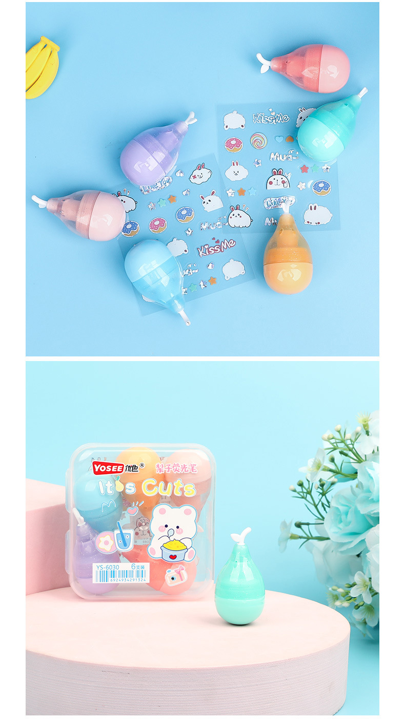6030 PEAR highlighter estudiante diario pluma marcador lindo etiqueta engomada de la historieta DIY regalo forma highlighter
