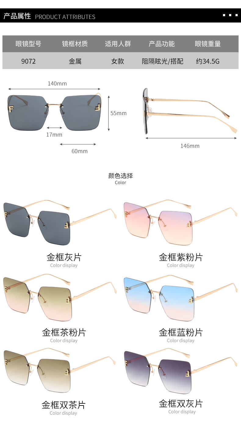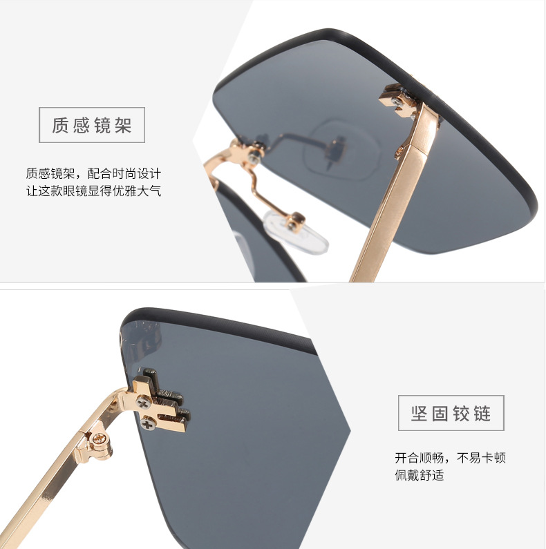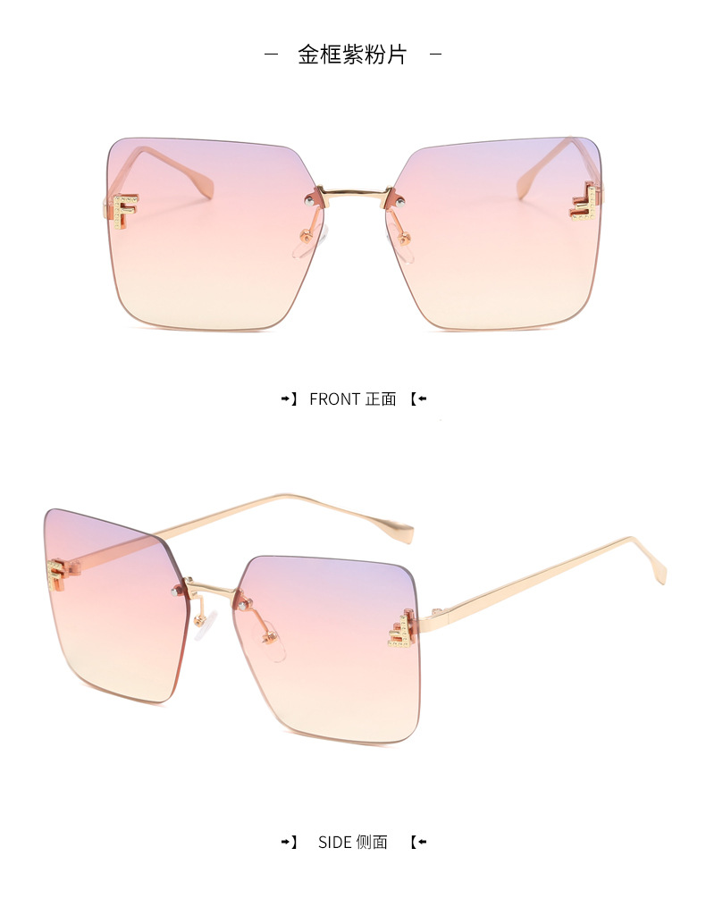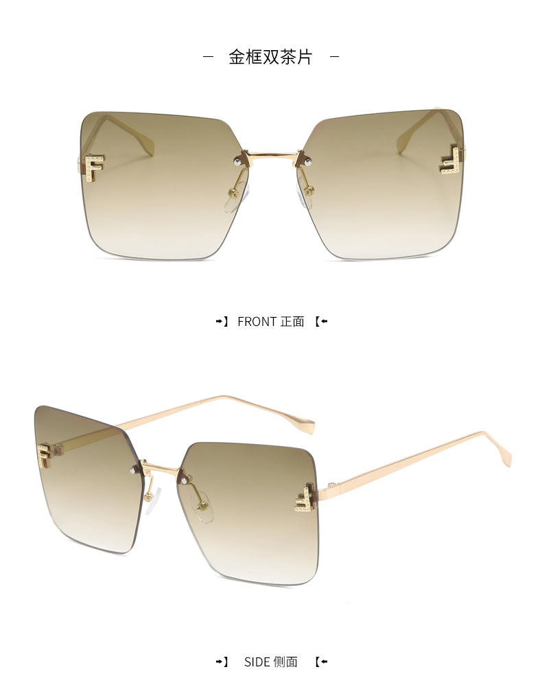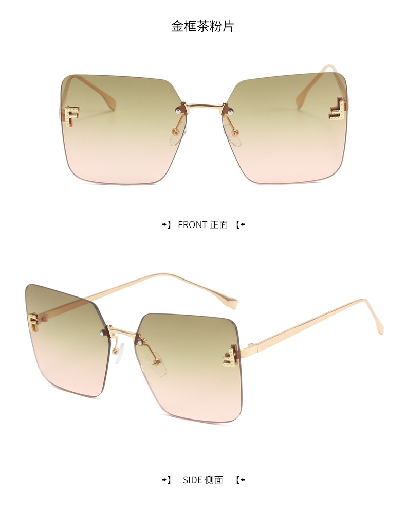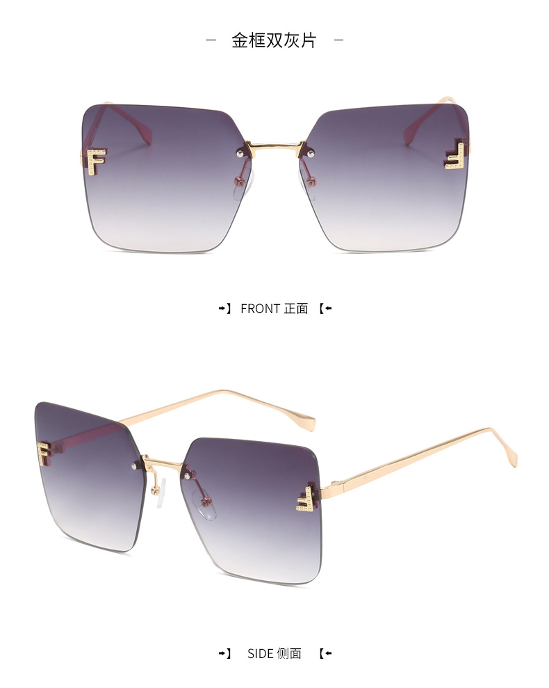 Nueva celebridad de Internet retro con el mismo párrafo Gafas de sol sin montura con letra F Cuadradas gafas de sol con bordes cortados europeos y americanos al por mayor transfronterizo femenino