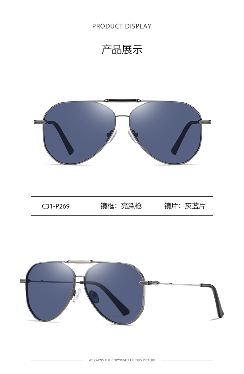 Nuevas gafas de sol polarizadas de conducción de los hombres a prueba de UV gafas de sol JS8557 piloto doble haz gafas de sol de moda