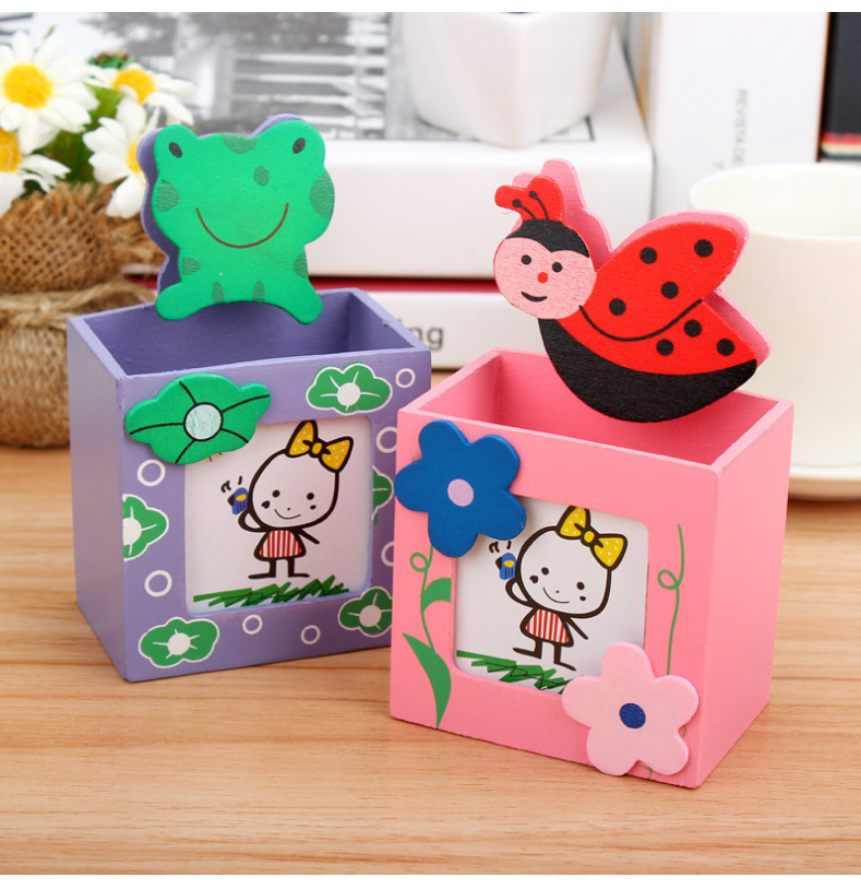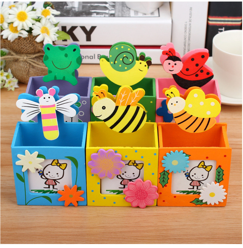 Premios creativos para estudiantes de primaria Portalápices de madera Dibujos animados lindos regalos para niños útiles escolares Papelería de jardín de infantes