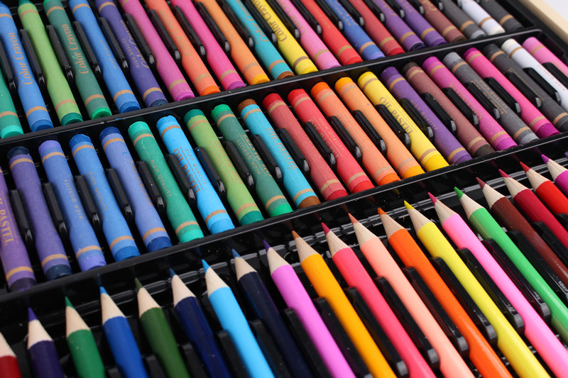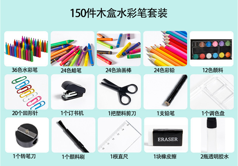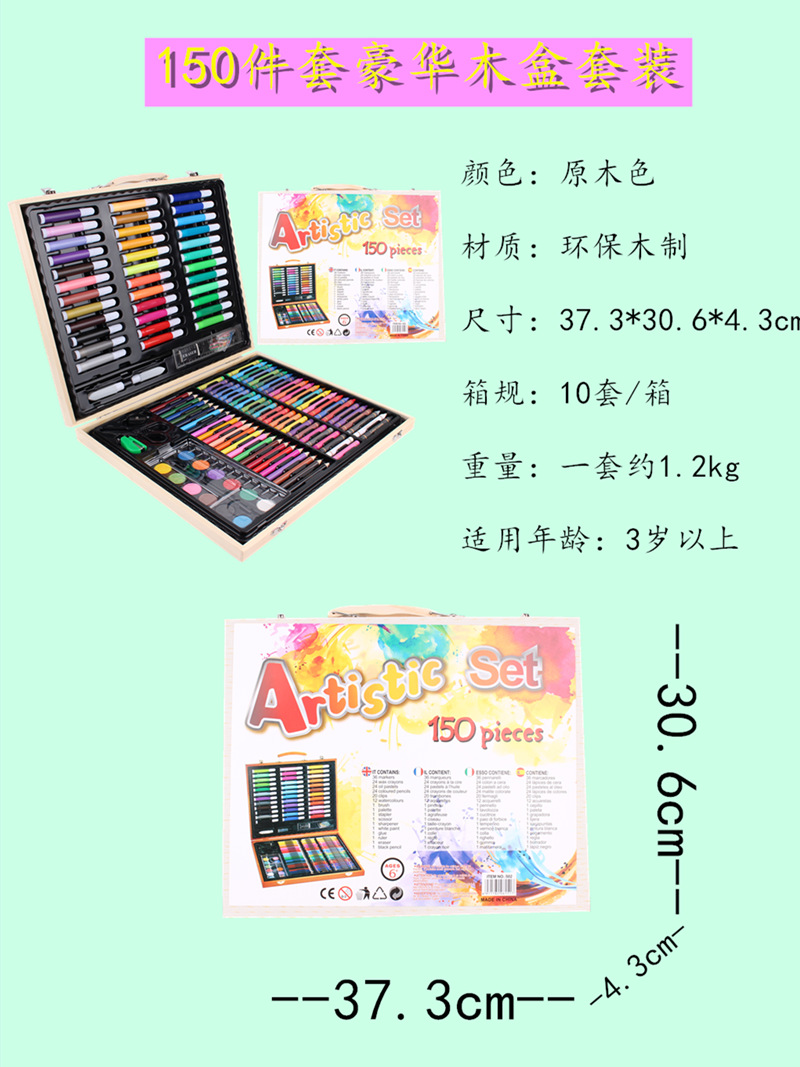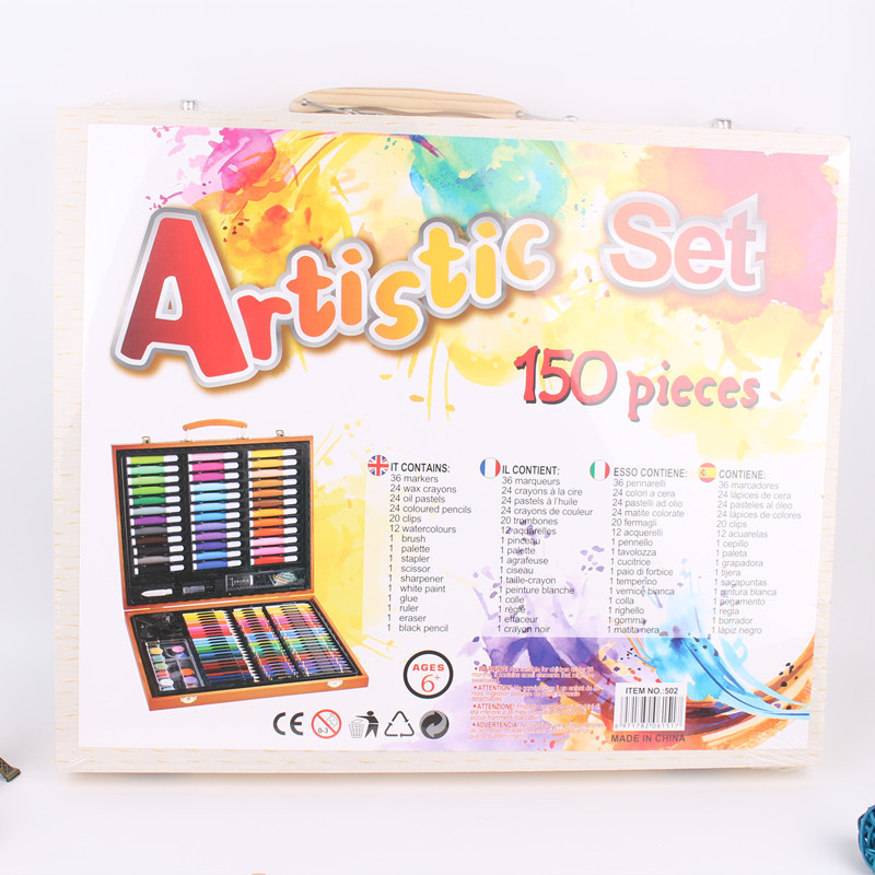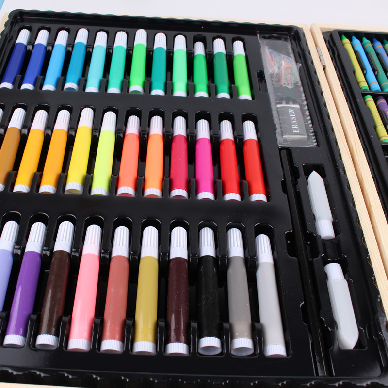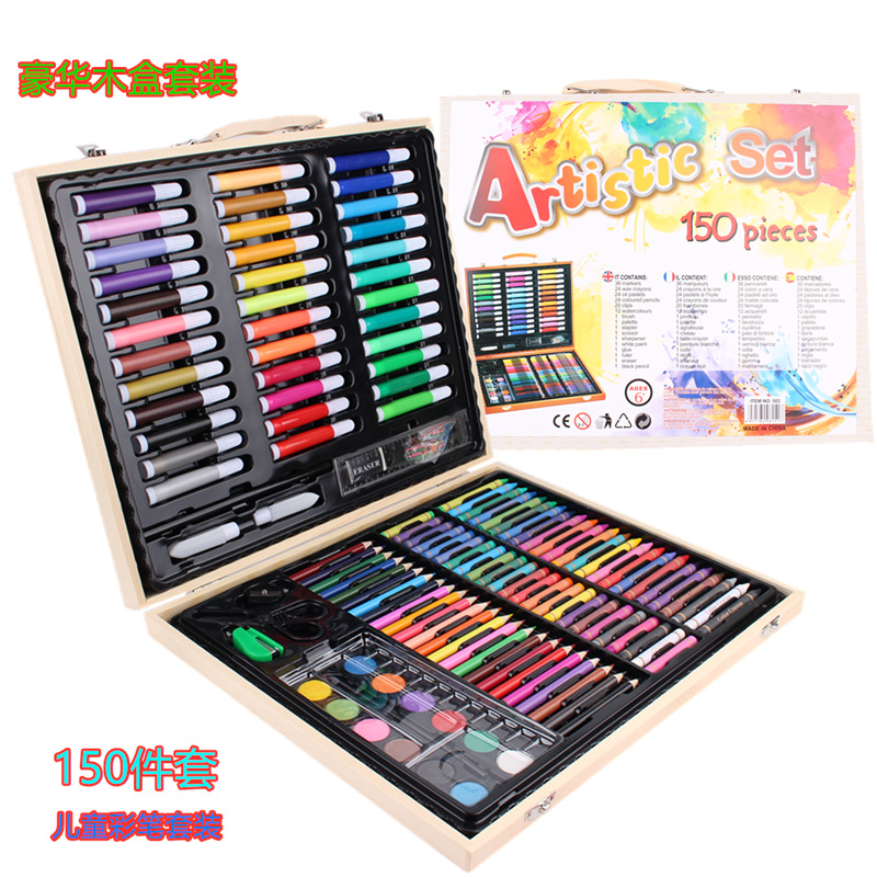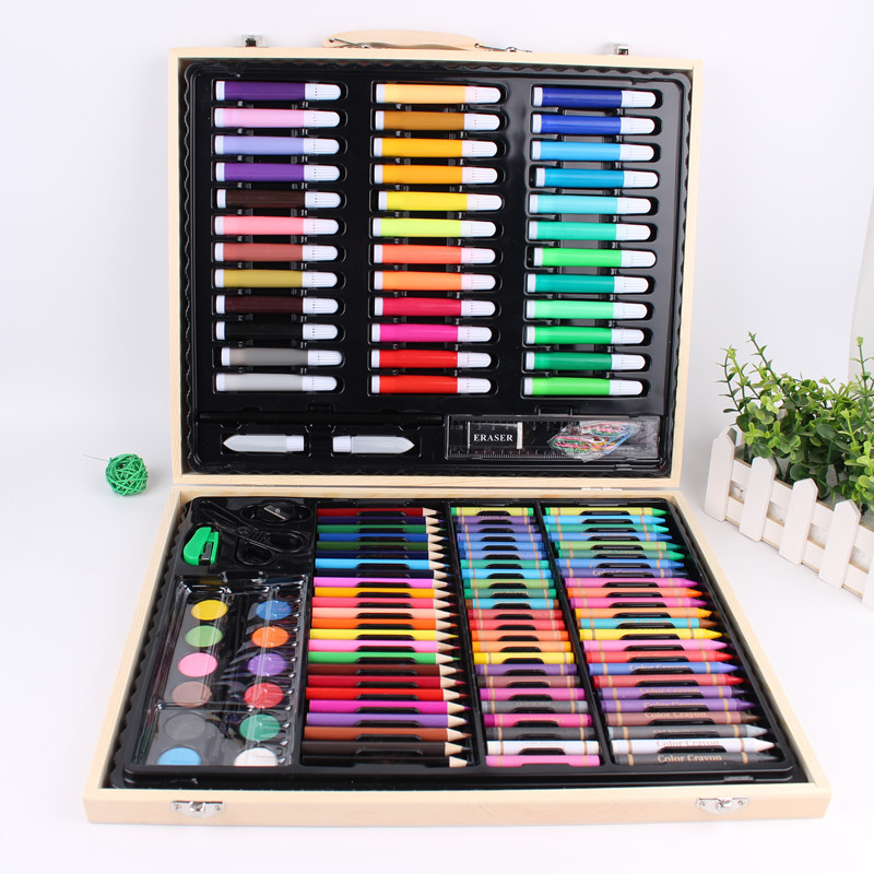 Creativo nuevo traje de combinación de pluma de color para niños 150 piezas caja de madera traje de pintura vacaciones estudiante papelería regalo