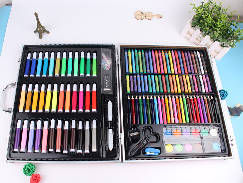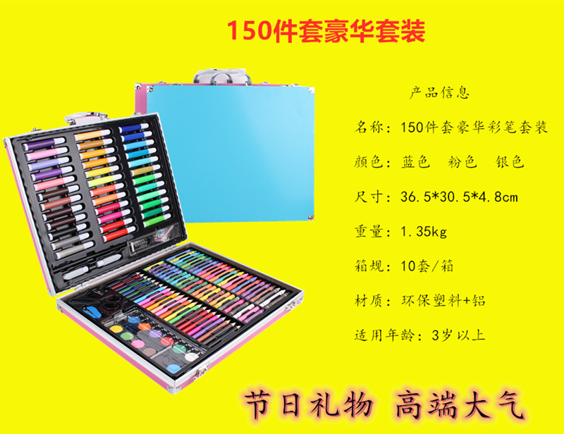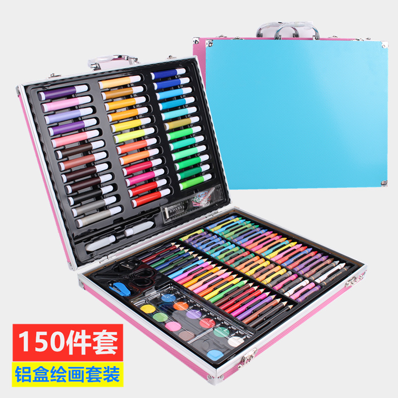 Los niños 150 caja de aluminio de lujo color pluma traje estudiante pintura graffiti pluma dibujos animados arte pintura cepillo Premio regalo
