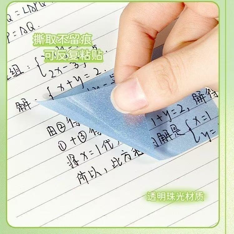 Notas adhesivas transparentes nacaradas, notas adhesivas brillantes para estudiantes, notas adhesivas en color de alto valor, notas adhesivas transparentes extraídas