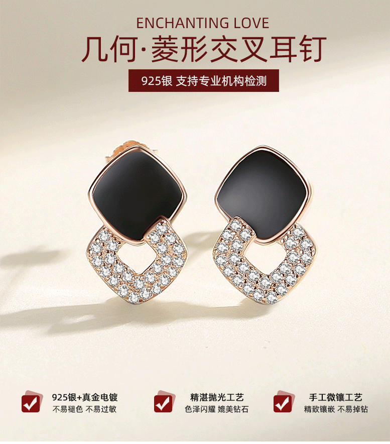 Pendientes de diamante completo cuadrado 925 plata esterlina estilo coreano elegante geométrico diamante Stud pendientes de las mujeres pendientes de estilo de lujo Luz