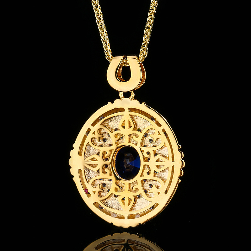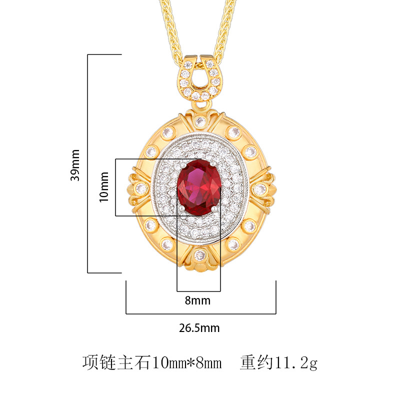 Otoño e invierno nuevo estilo Zhuang Shengsheng joyería simulación corindón oro retro palacio diseño colgante collar piedra principal 8*10