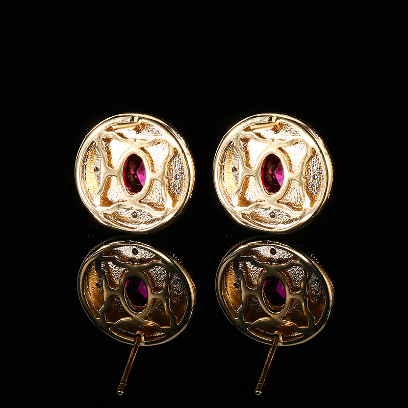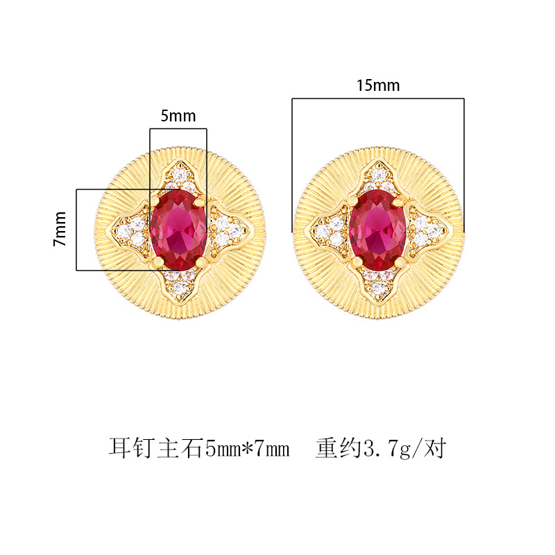 Otoño e invierno nuevo estilo Zhuang Shengsheng joyería fondo de cobre chapado en oro nueva simulación corindón rojo cristal puntiagudo azul piedra redonda retro 5*7