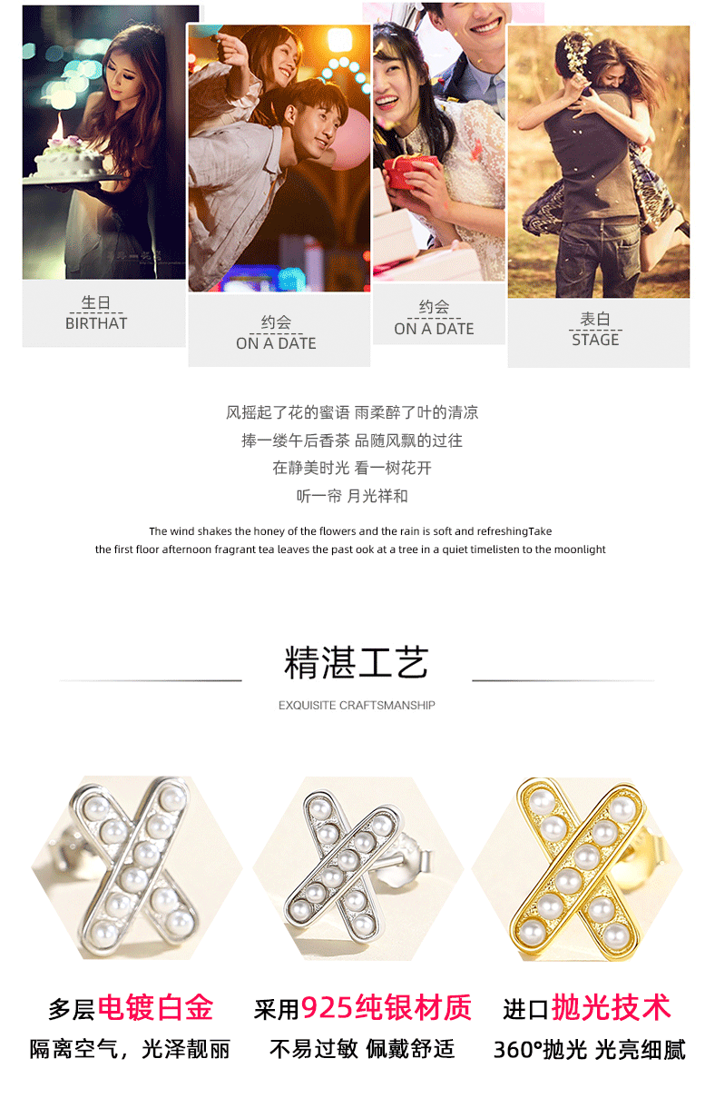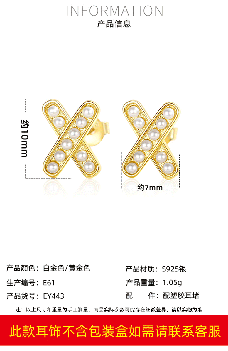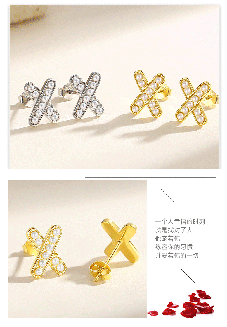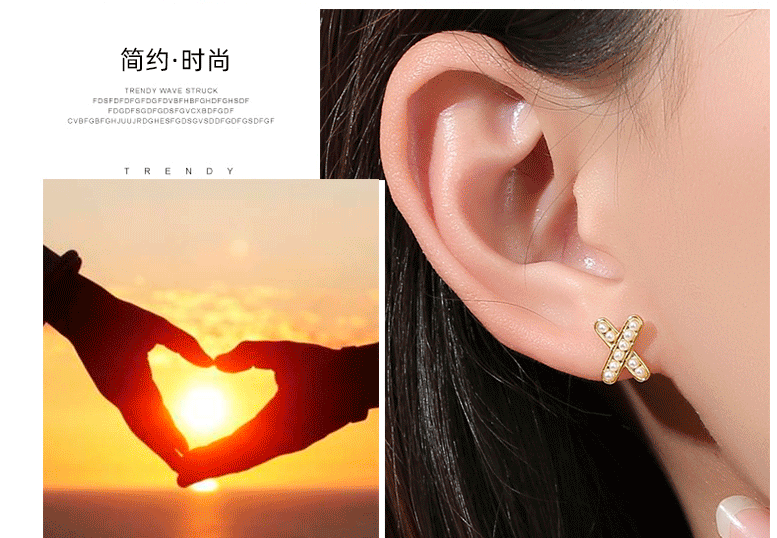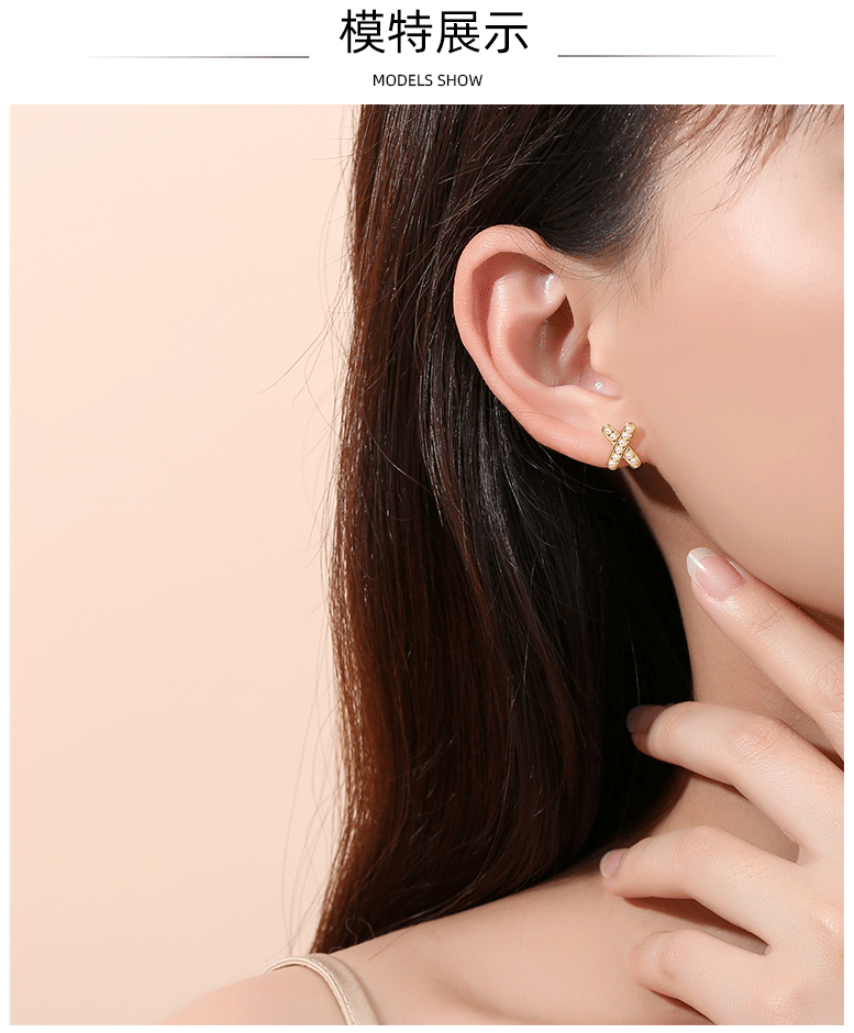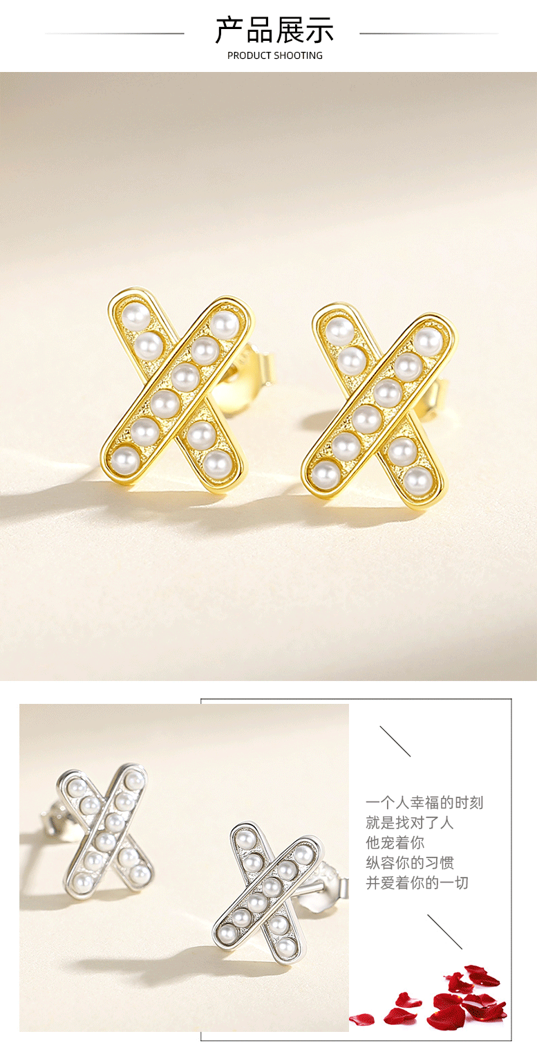 Perla Cruz letra X Stud pendientes de plata 925 estilo francés luz estilo de lujo nicho diseño sentido nicho Stud pendientes Internet celebridad mismo estilo