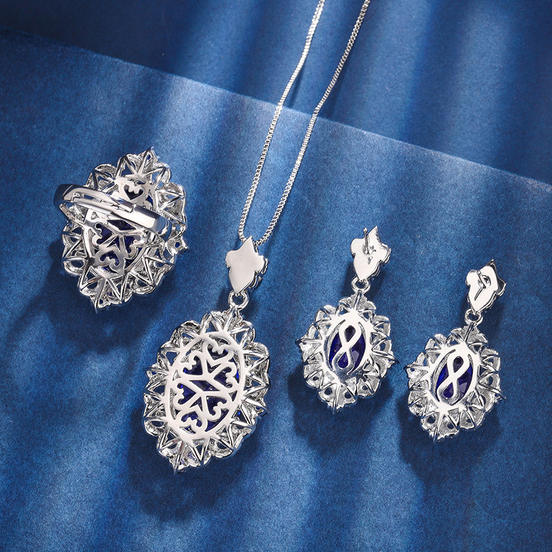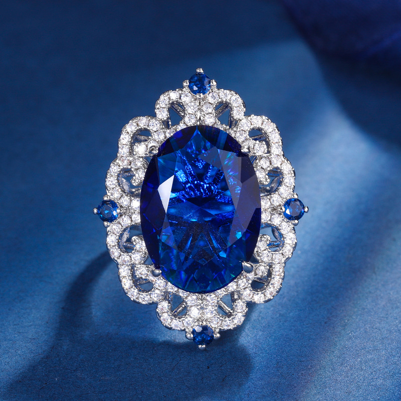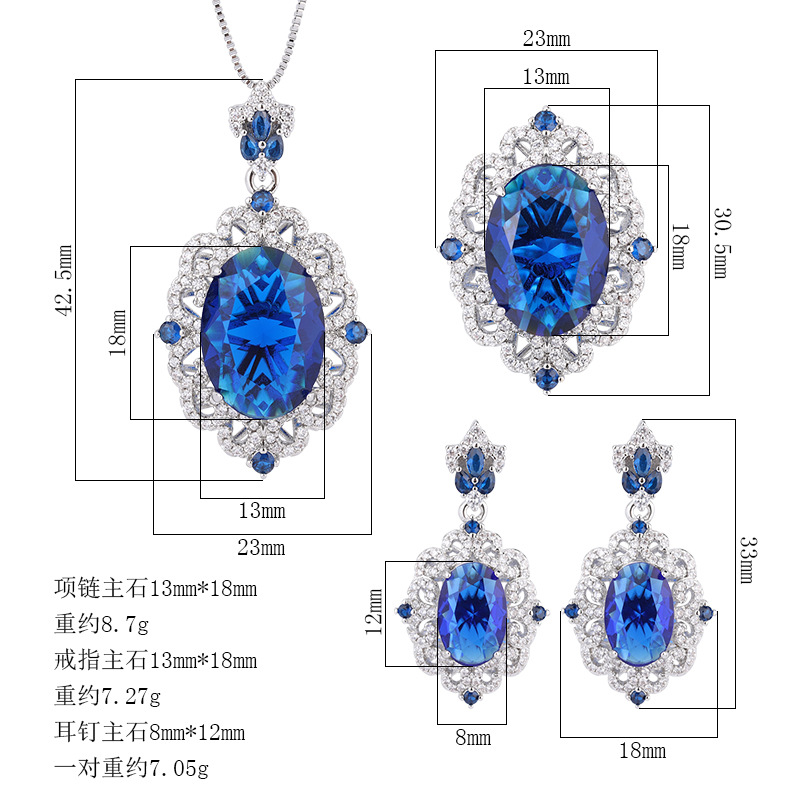 Zhuang Shengsheng Jewelry, fondo de cobre, juego de cristal puntiagudo azul de simulación chapado en oro, estilo creativo, incrustaciones de lujo de diamantes completos 13*18-8*12