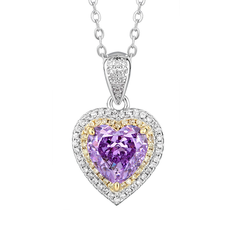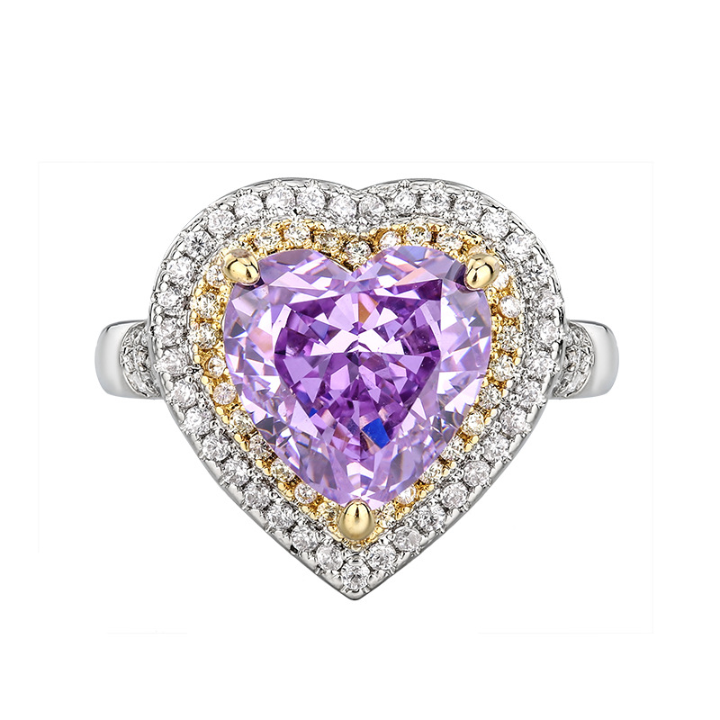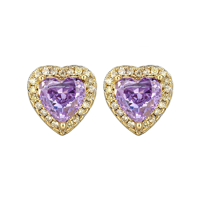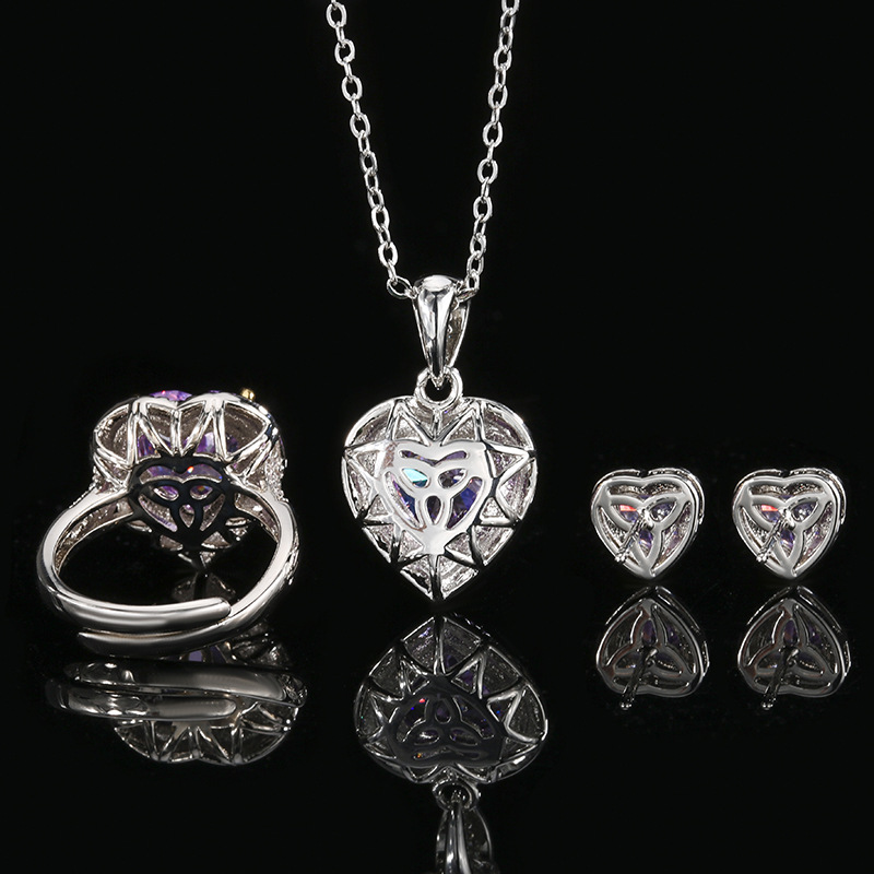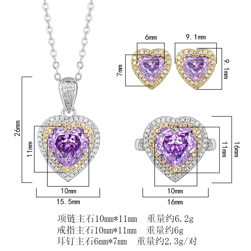 Otoño e invierno nuevo estilo Zhuang Shengsheng joyería con alto contenido de carbono diamante flor de hielo corte diamante púrpura cobre con incrustaciones de corazón juego 10*10-6*6