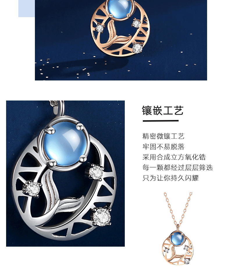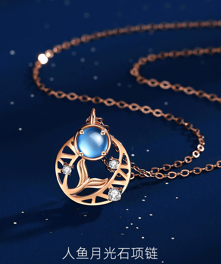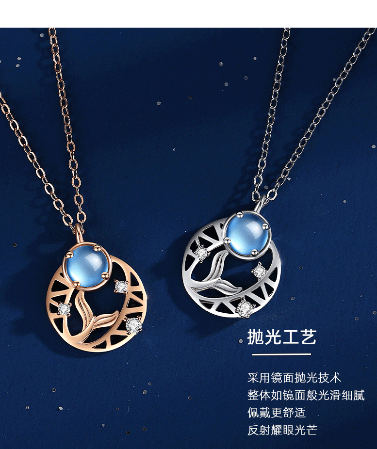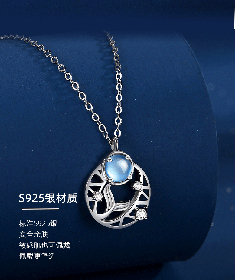 S925 plata esterlina sirena cola collar japonés y coreano moda luz lujo Luna collar fantasía Día de San Valentín regalo