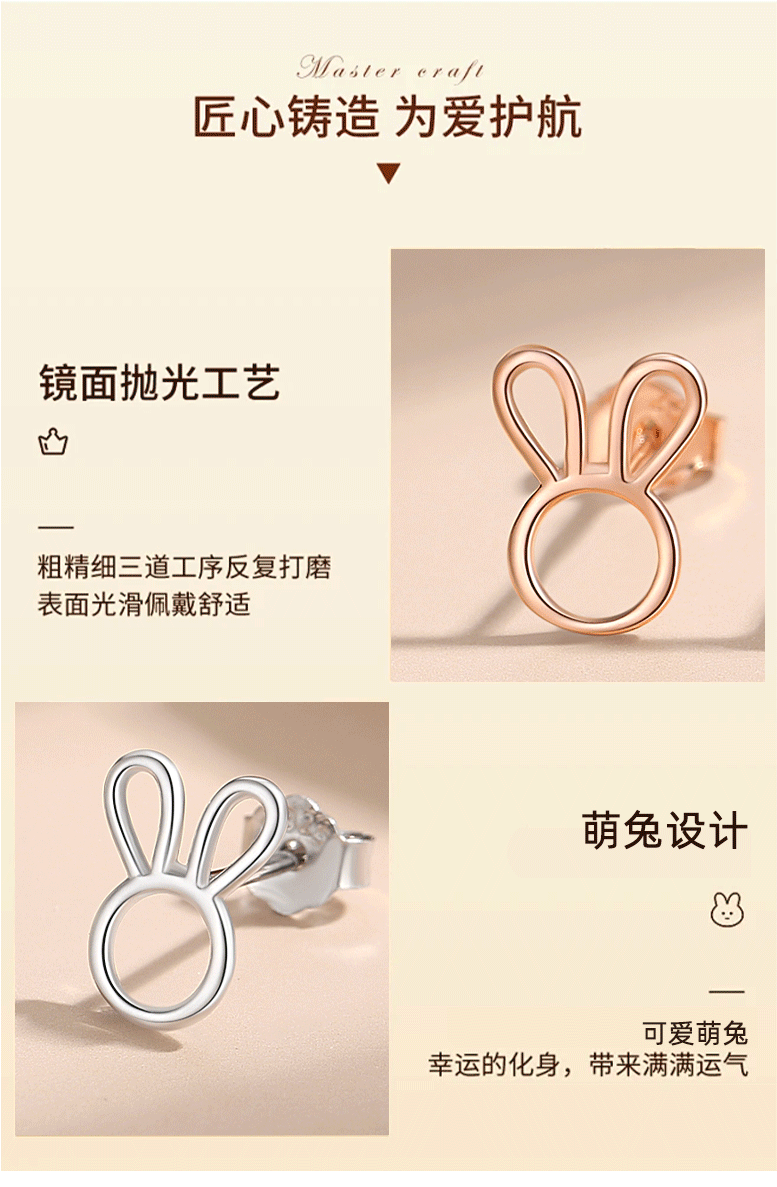 Pendientes de plata 925 conejito simple nicho pendientes de plata simple de alto grado del hueso del oído del perno prisionero lindo 925 pendientes al por mayor