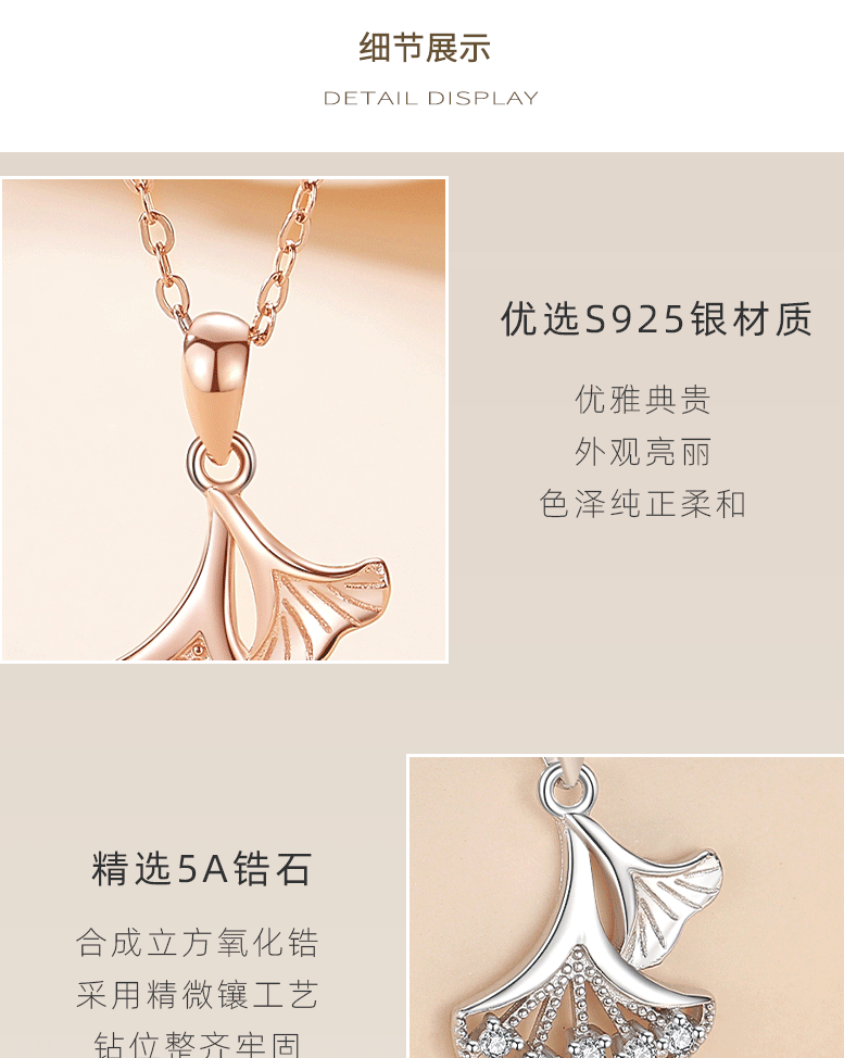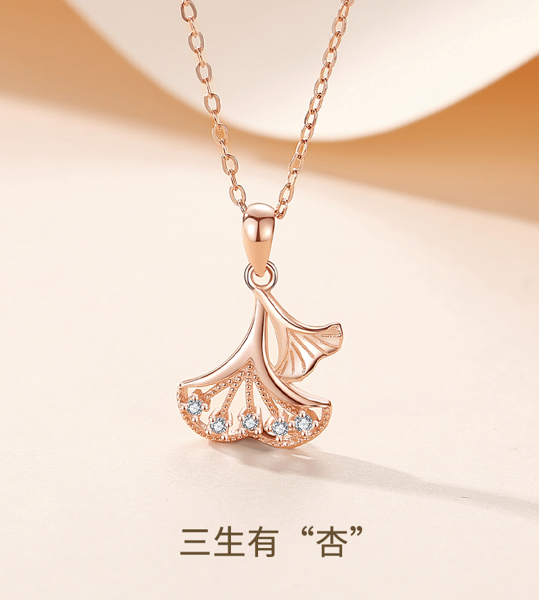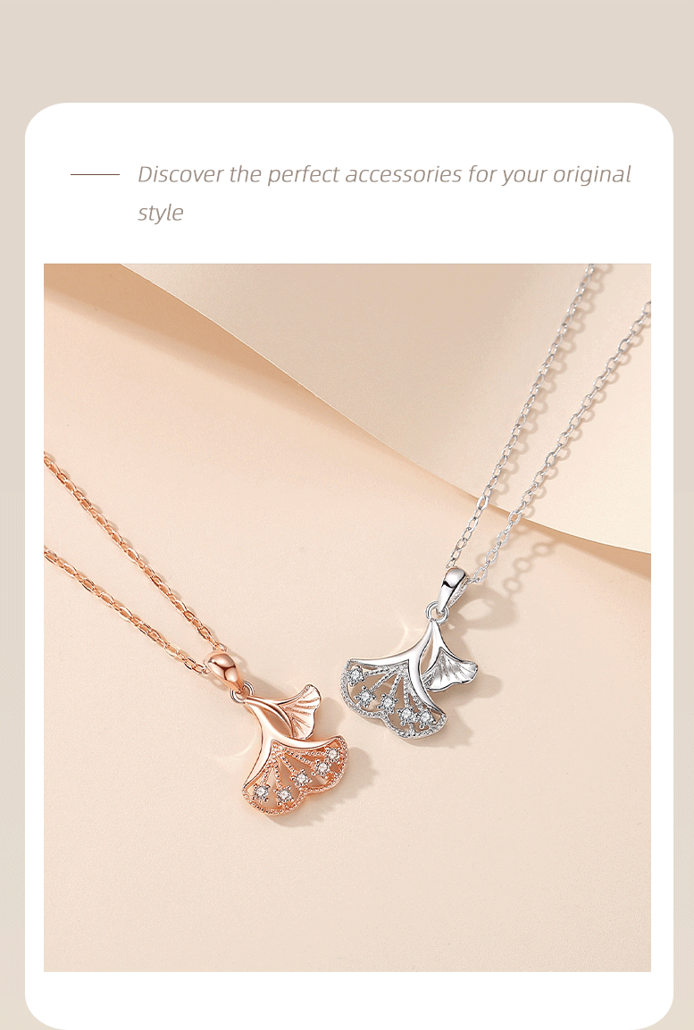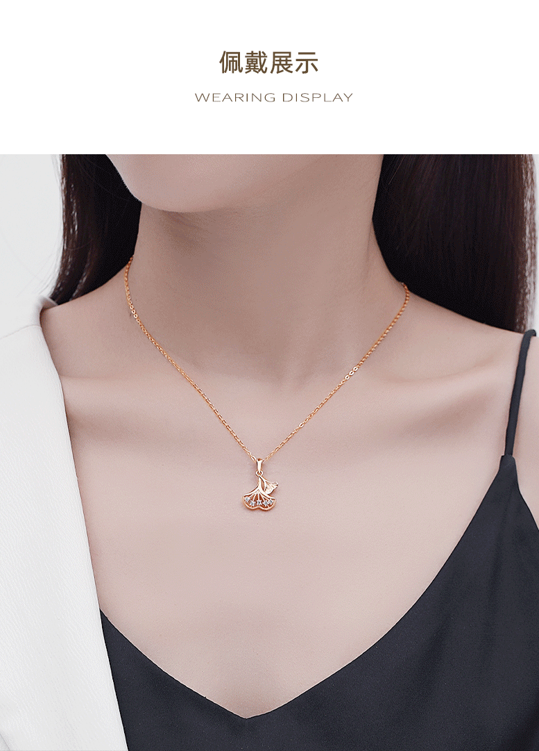 Sansheng suerte plata esterlina S925 collar ginkgo hoja diamante hoja planta clavícula cadena japonés y coreano dulce nicho collar