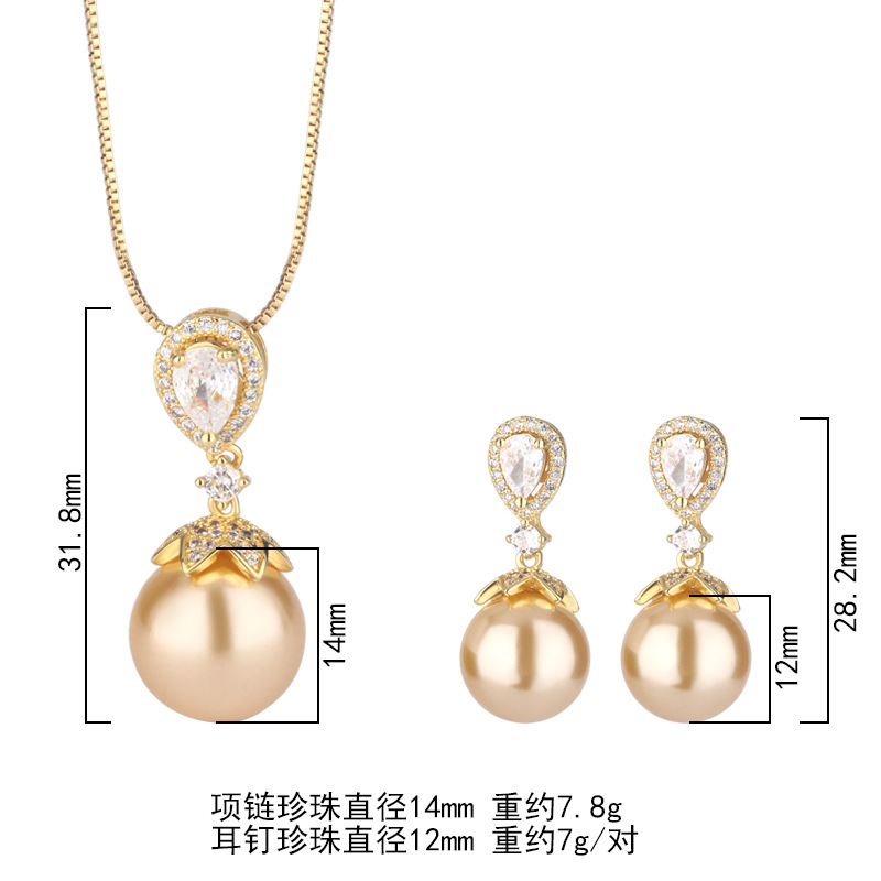 2024 nuevo estilo Zhuang Shengsheng joyería fondo de cobre chapado en oro perla temperamento lujo ligero traje de oro mujer 14-12mm al por mayor