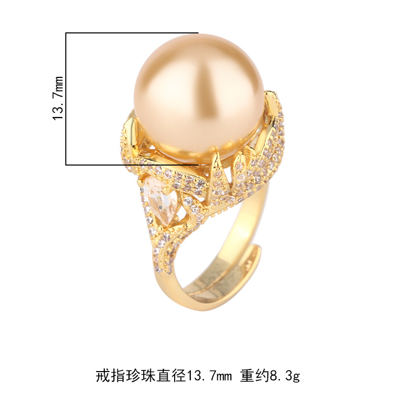 2024 nuevo estilo Zhuang Shengsheng joyería cobre chapado en platino perla anillo retro de alta calidad mujer 14mm al por mayor