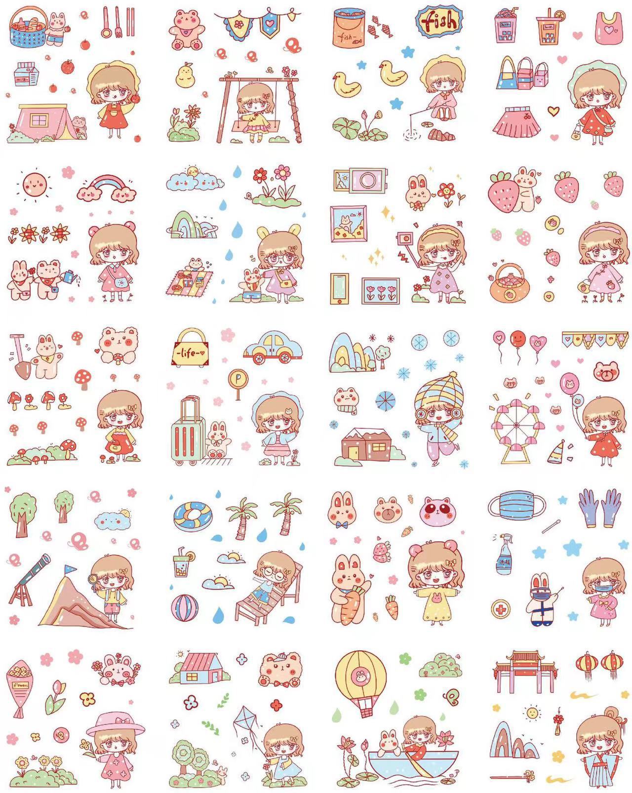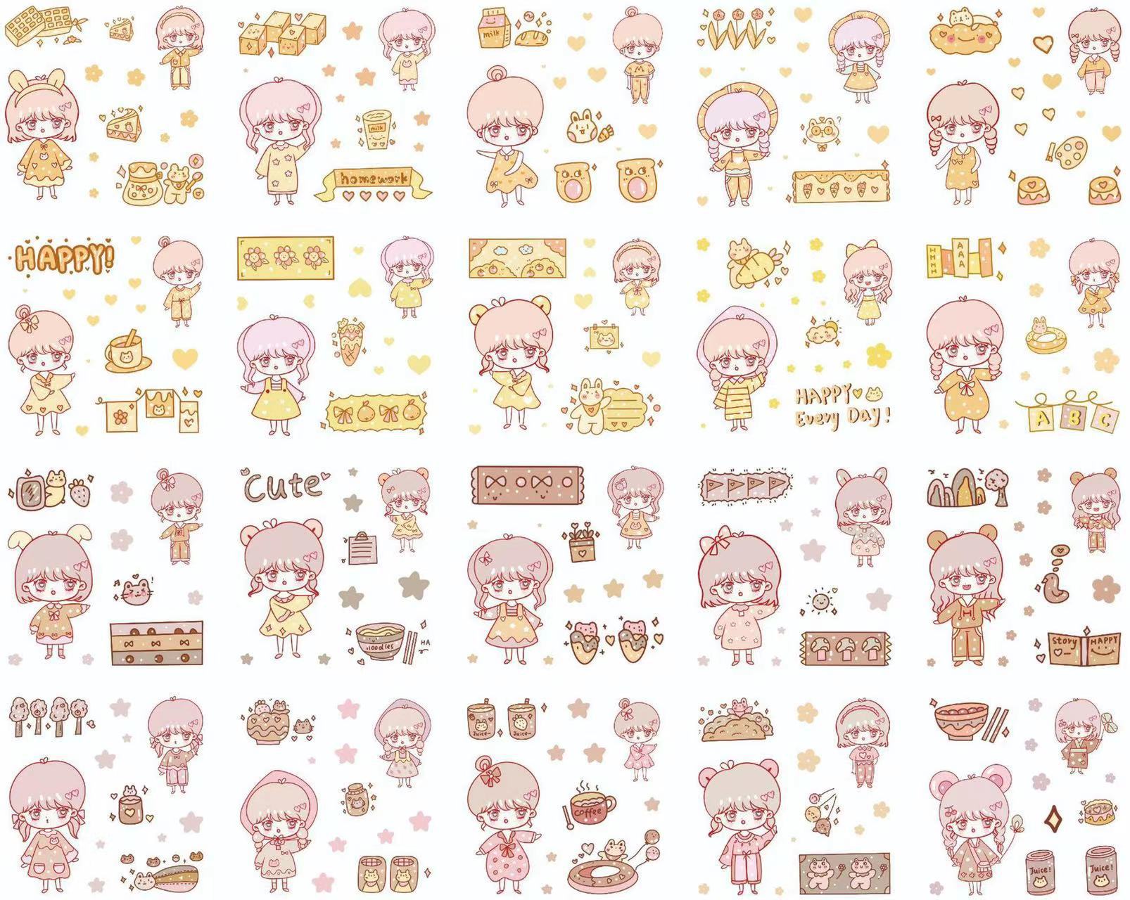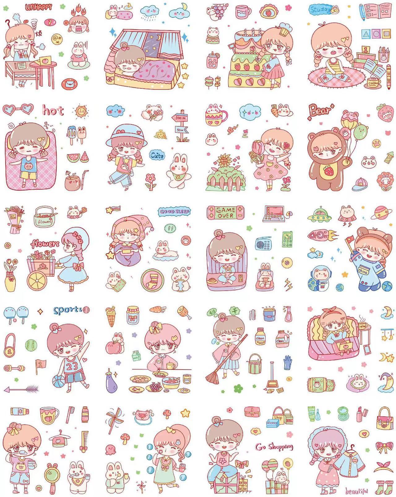 Cute Cartoon 100 hojas en caja pegatinas de cuentas de mano para niños creativos pegatinas de cuentas de mano pvc juego de pegatinas de tarjetas gu al por mayor