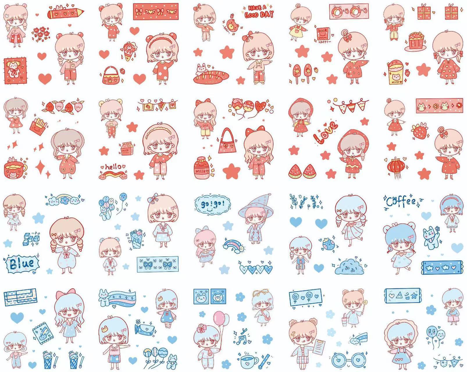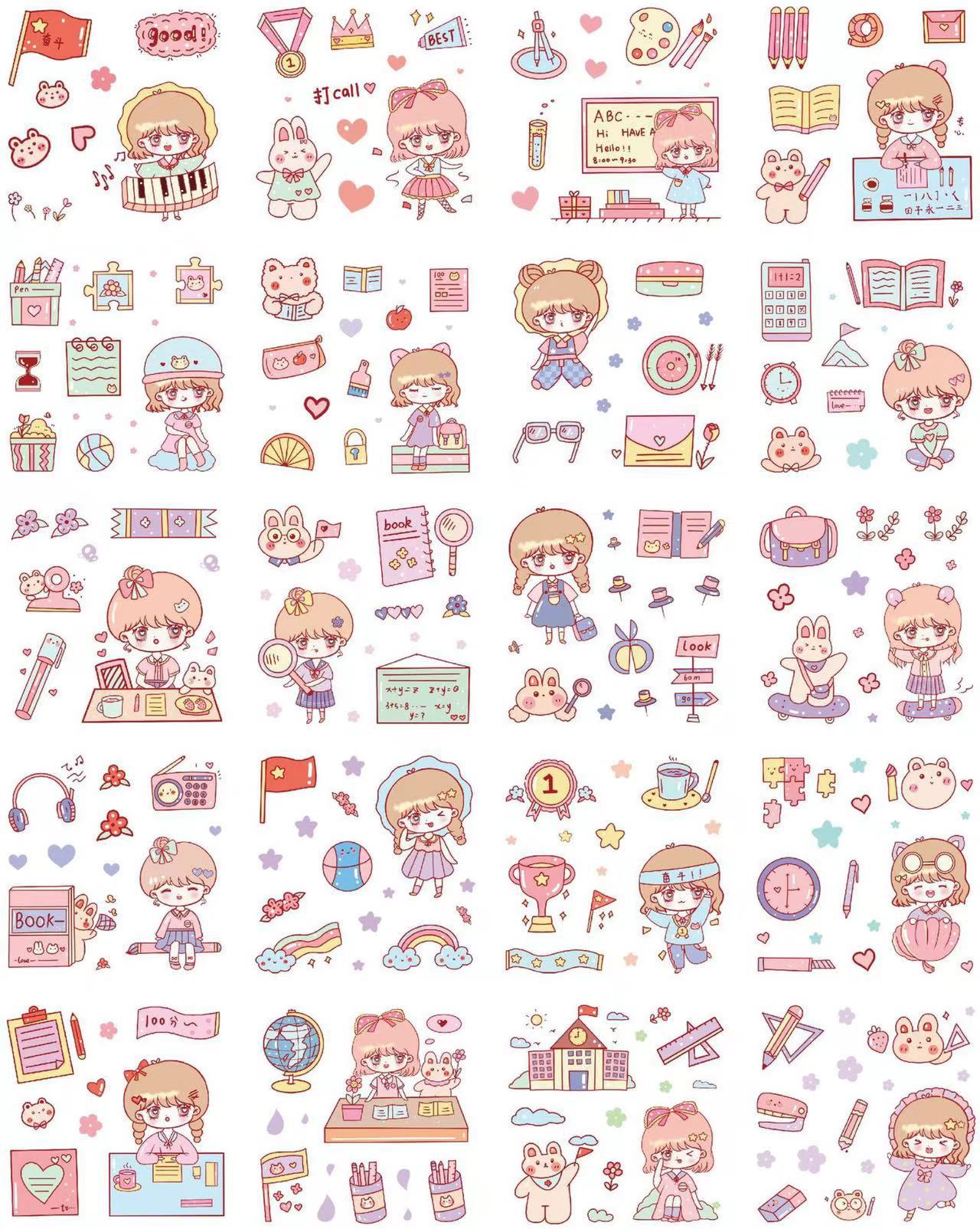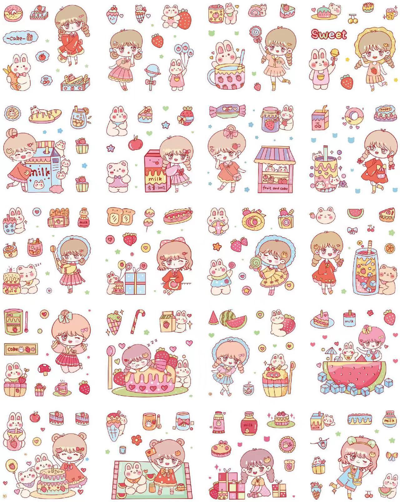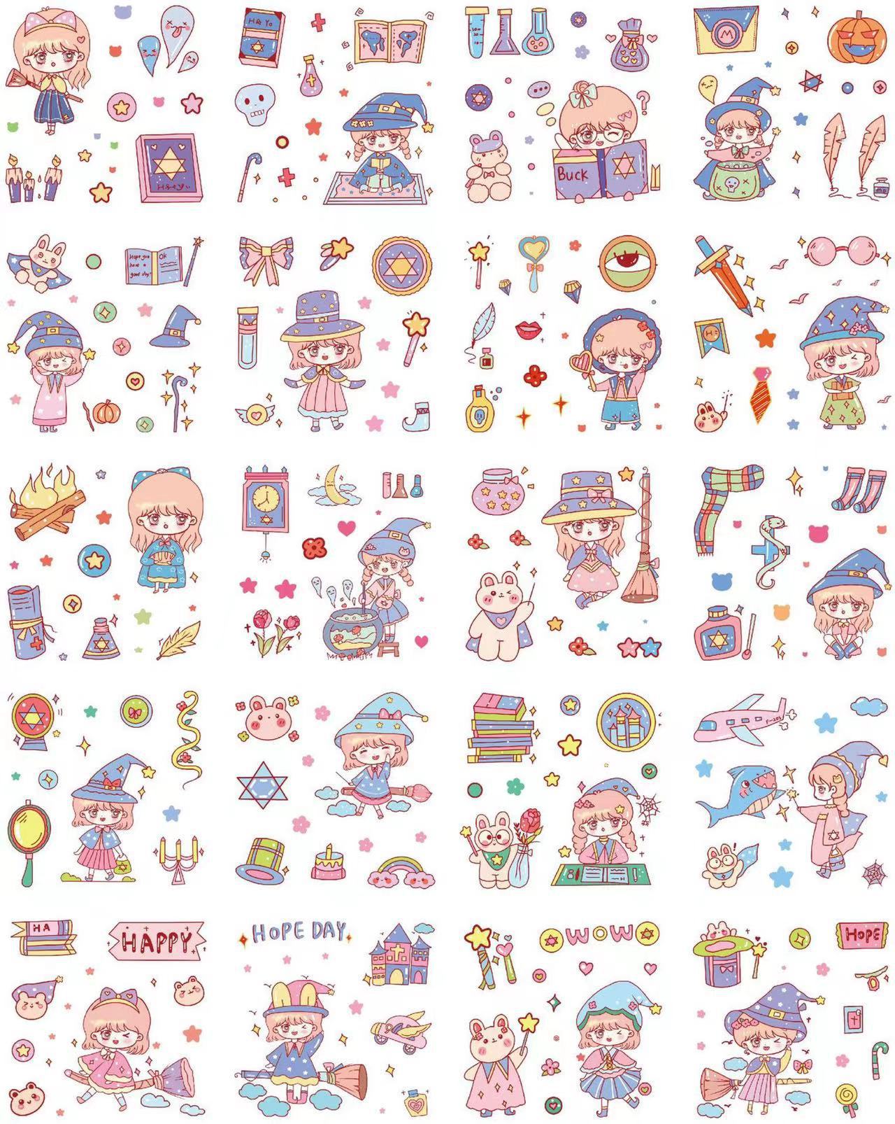 Cute Cartoon 100 hojas en caja pegatinas de cuentas de mano para niños creativos pegatinas de cuentas de mano pvc juego de pegatinas de tarjetas gu al por mayor