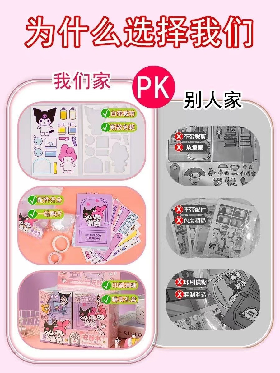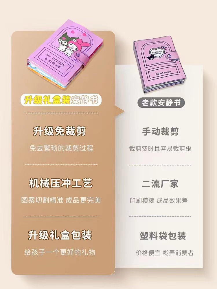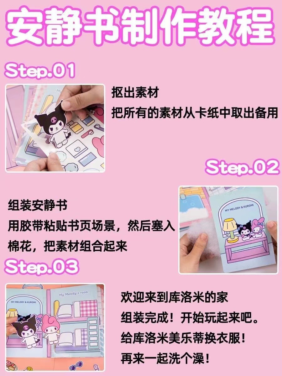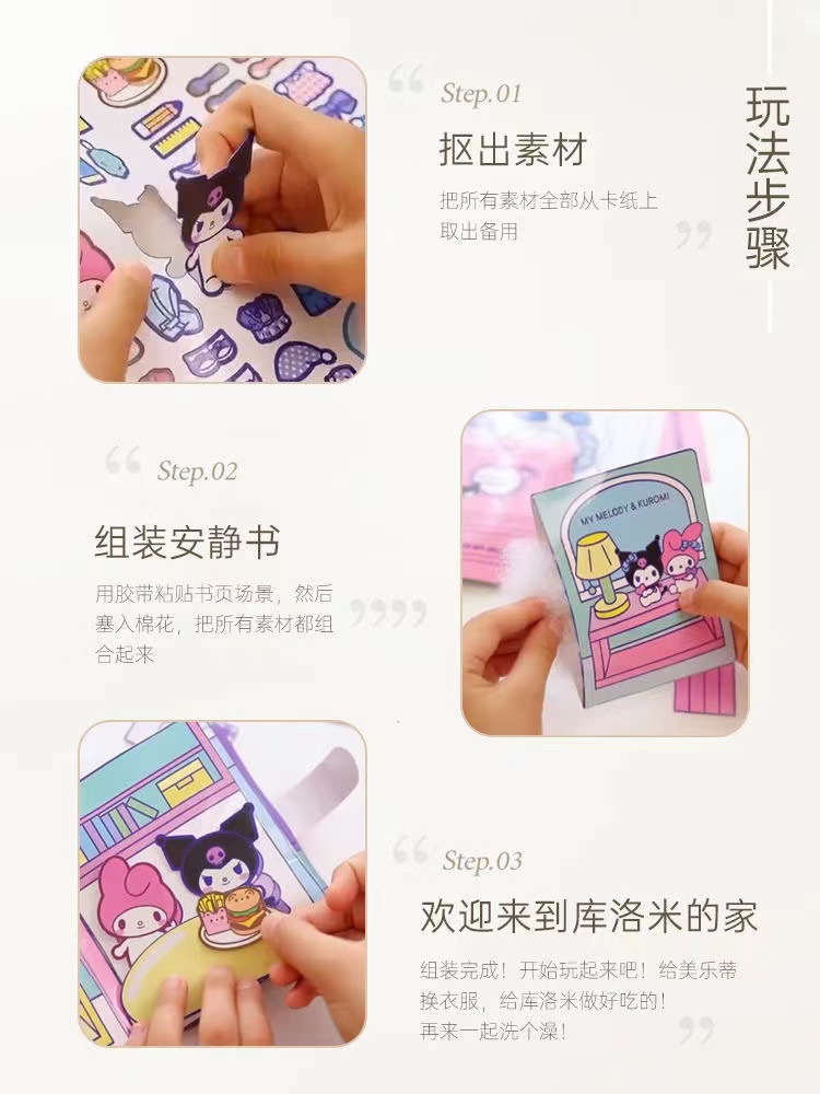 Material de libro tranquilo de Corte libre hecho a mano de niña material de bricolaje coolomi Sanrio Doudou libro terminado Niños