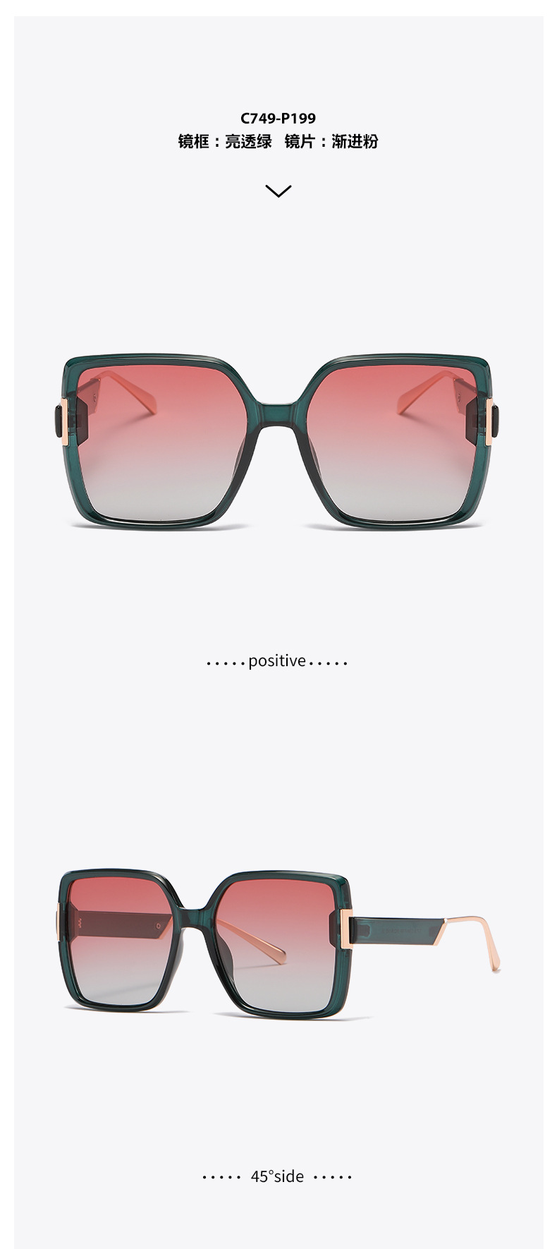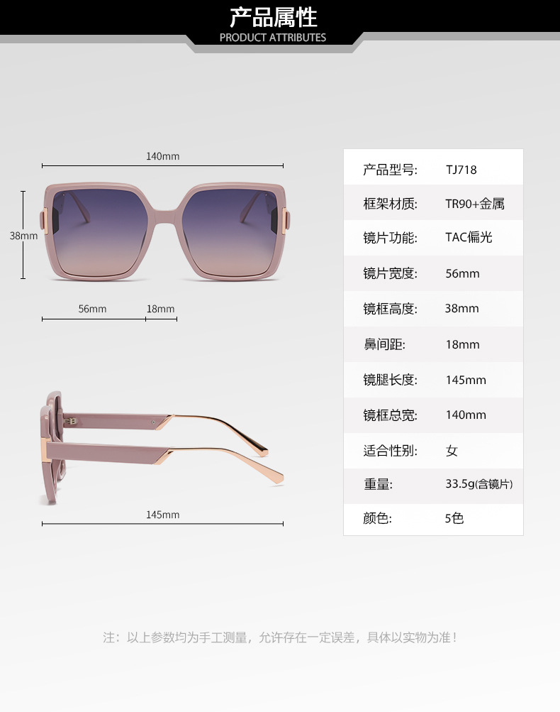 En stock nuevas gafas de sol polarizadas TJ718 moda calle tiro cuadrado gafas grandes marco adelgazante TR gafas de sol de mujer