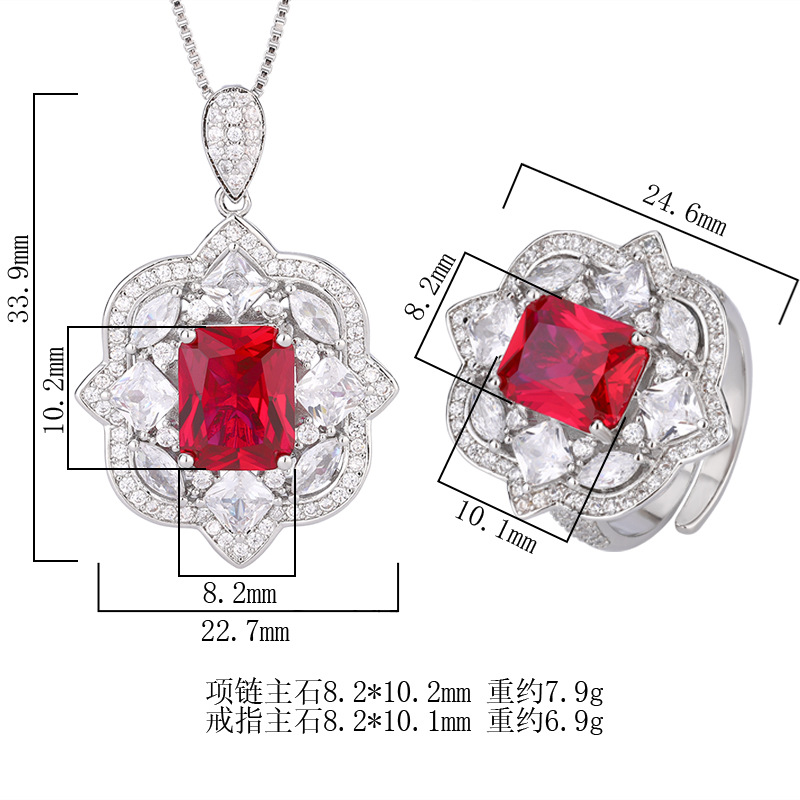 | Colores | Colgante de cristal puntiagudo azul con cadena,Anillo de cristal puntiagudo azul,Colgante de corindón rojo con cadena,Anillo de corindón rojo |