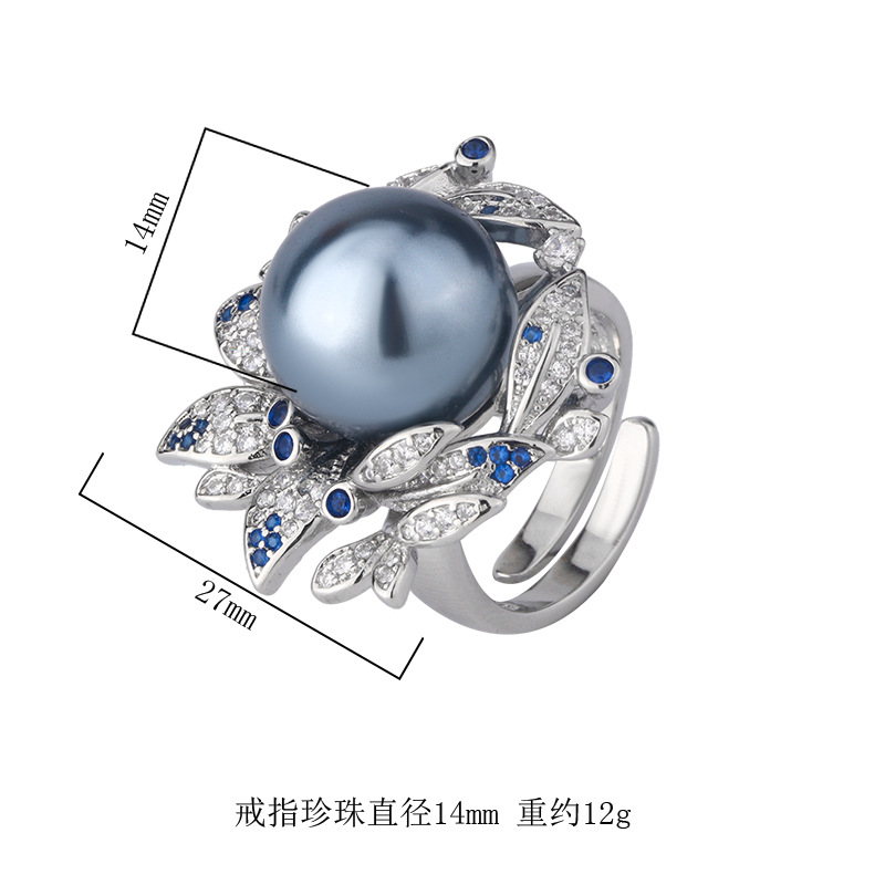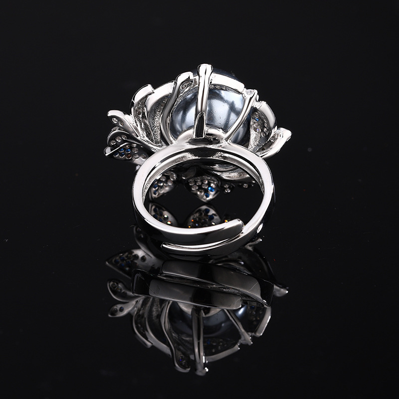 2024 nueva joyería cobre chapado en platino nuevo estilo con incrustaciones de flor de perlas temperamento anillo de lujo ligero 14mm