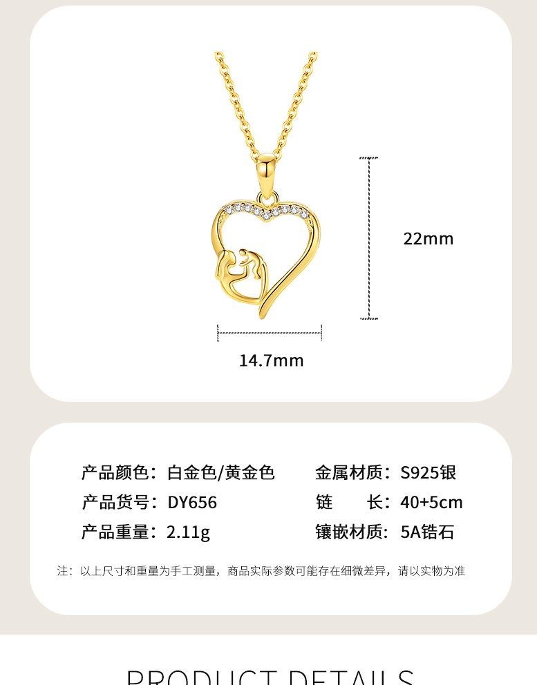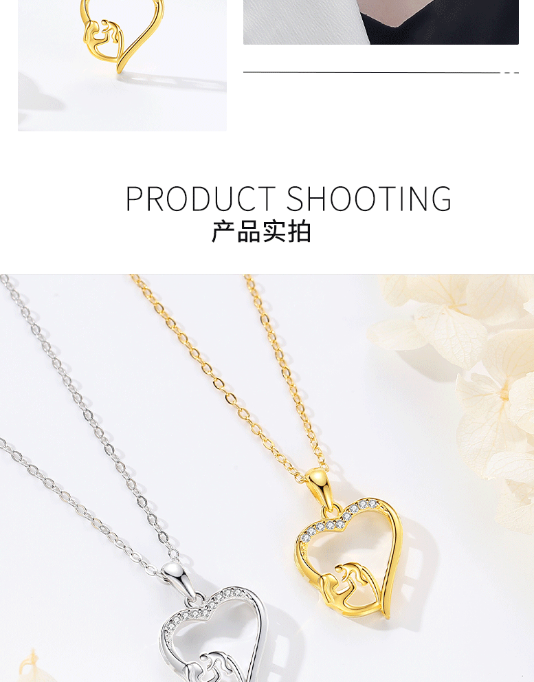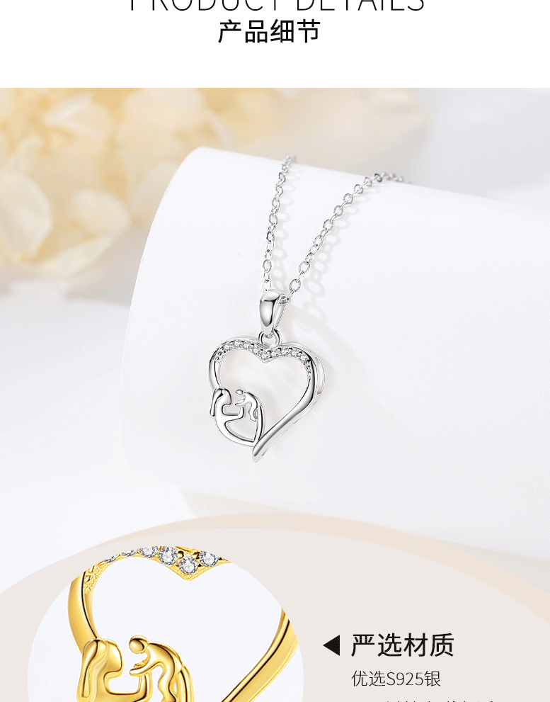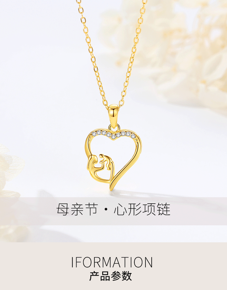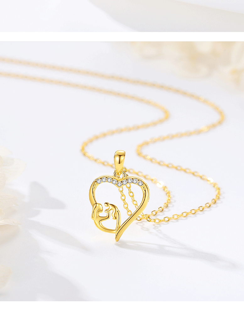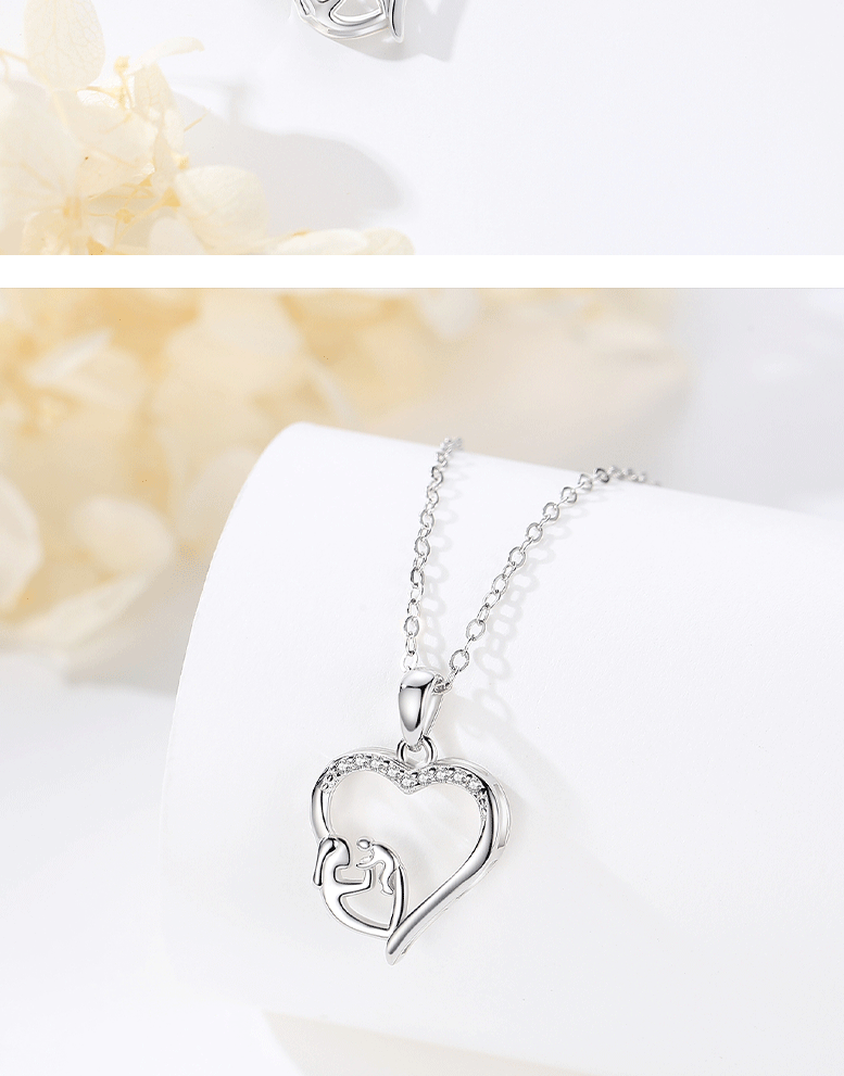 S925 plata de ley transfronteriza europea y americana moda en forma de corazón madre-niño collar simple madre colgante regalo del Día de la madre al por mayor