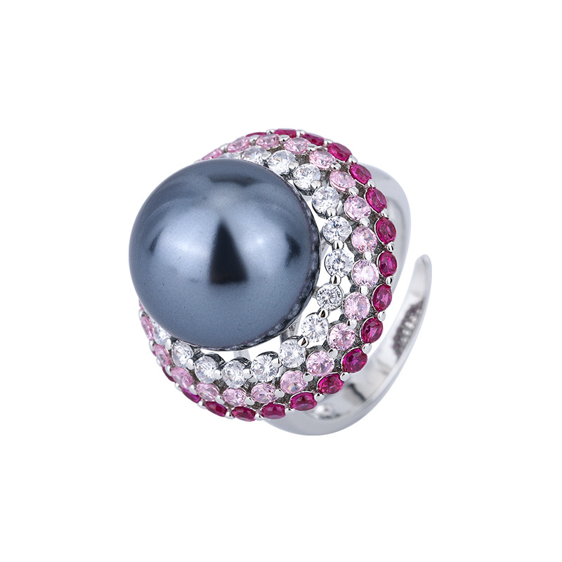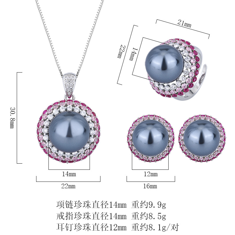 Joyas de Zhuang Shengsheng con fondo de cobre chapado en oro, tesoro de color de simulación con incrustaciones de perlas grises, traje de tres piezas para mujer 14-12mm