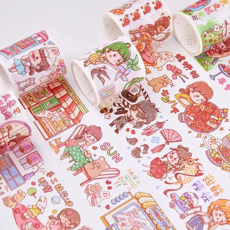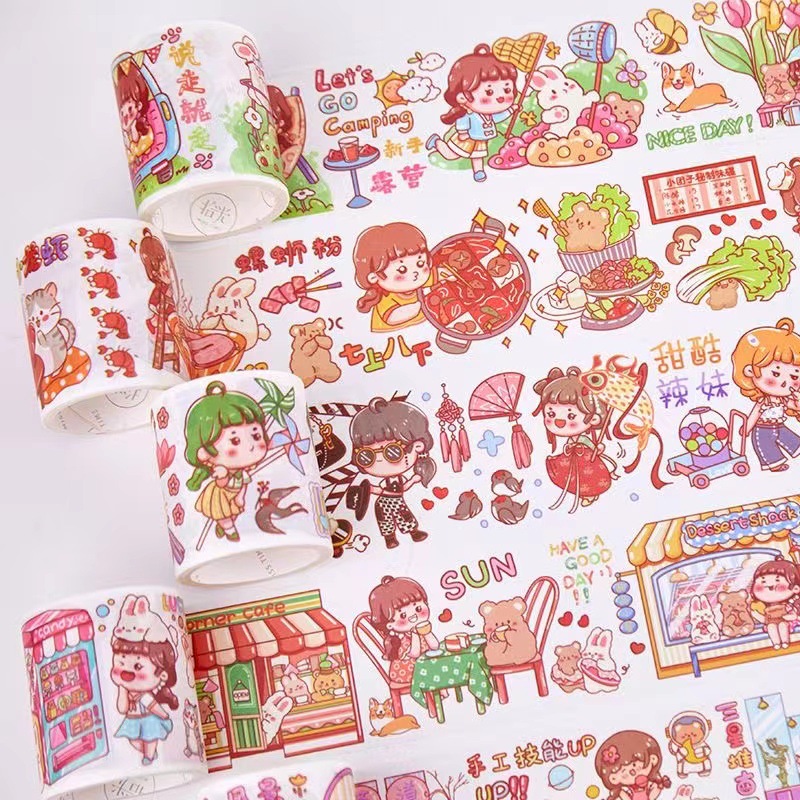 Nuevo aceite especial lindo y cinta de papel chica y papel diario pegatinas personaje de dibujos animados pegatinas material decorativo pegar