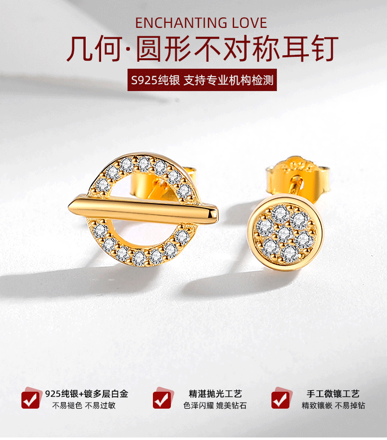 Estilo coreano S925 plata esterlina diseño de nicho círculo asimétrico pendientes para mujeres 2021 nuevos pendientes de celebridades en línea personalizados de moda