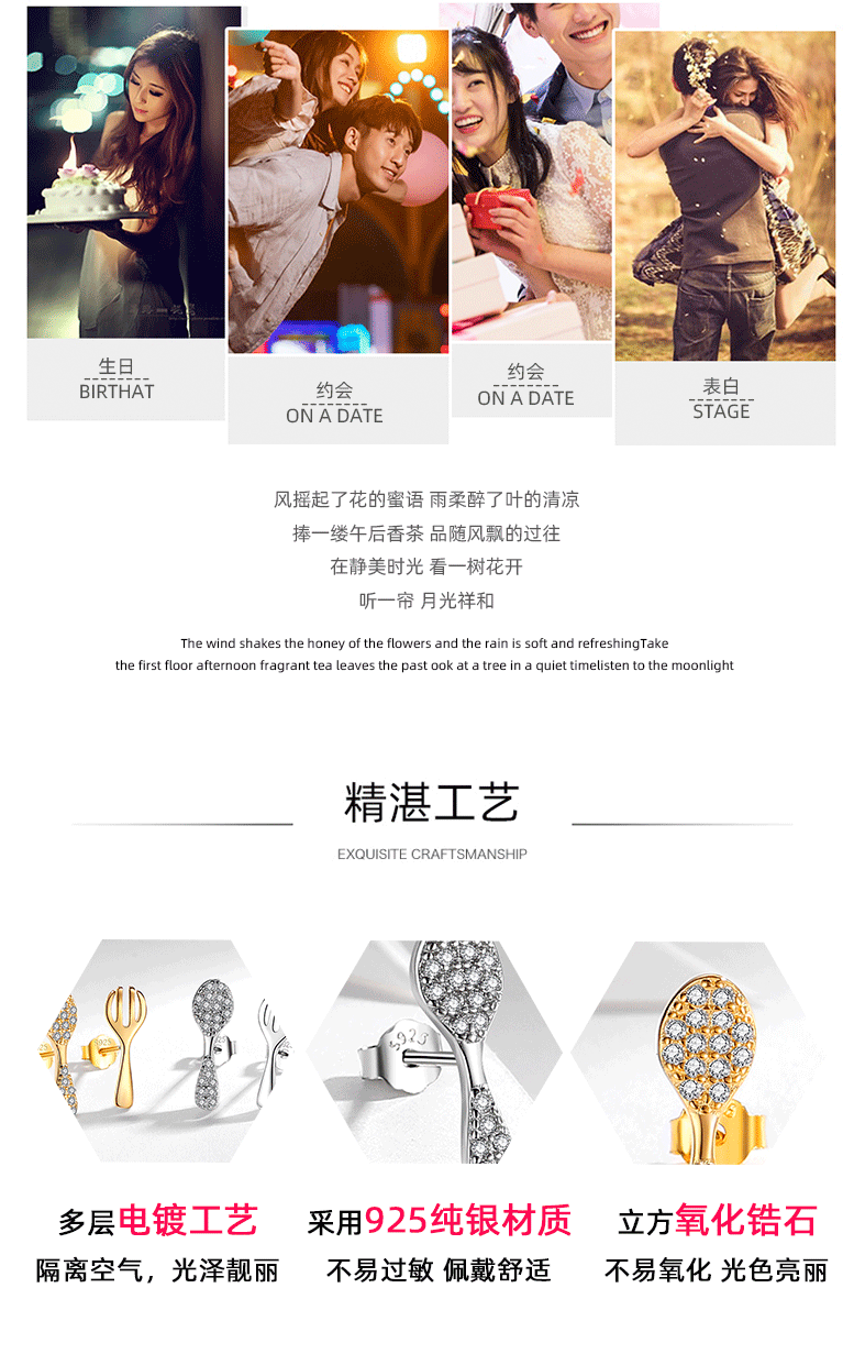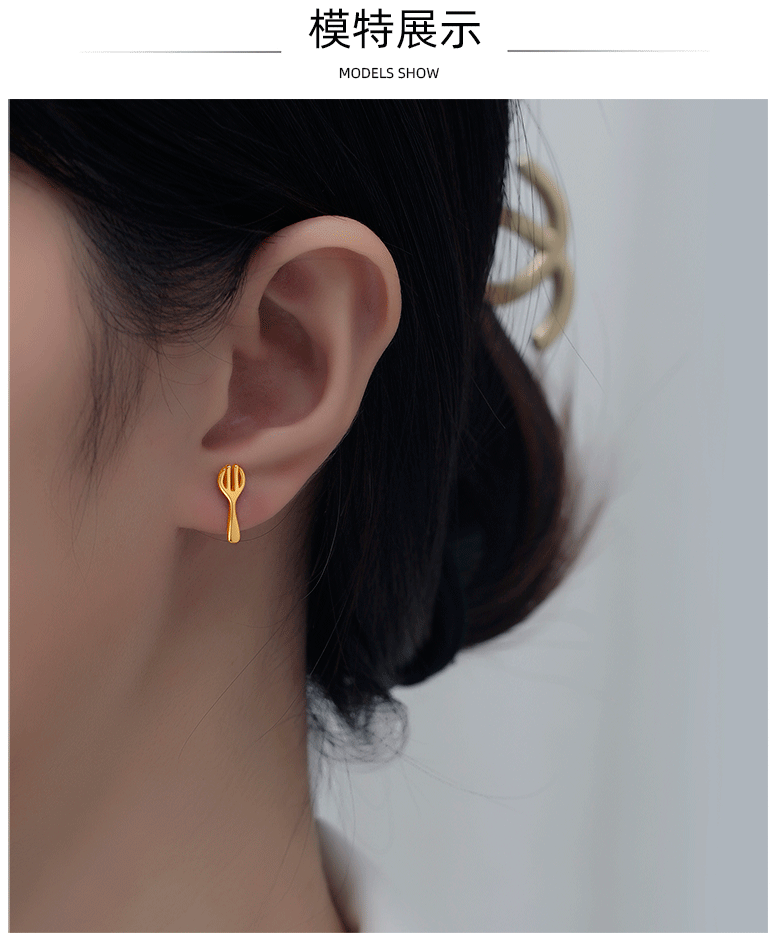 Pendientes de plata esterlina S925 pendientes de plata aguja cuchara asimétrica Tenedor pendientes 925 pendientes de circón al por mayor pendientes de estilo ins