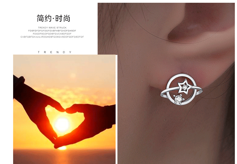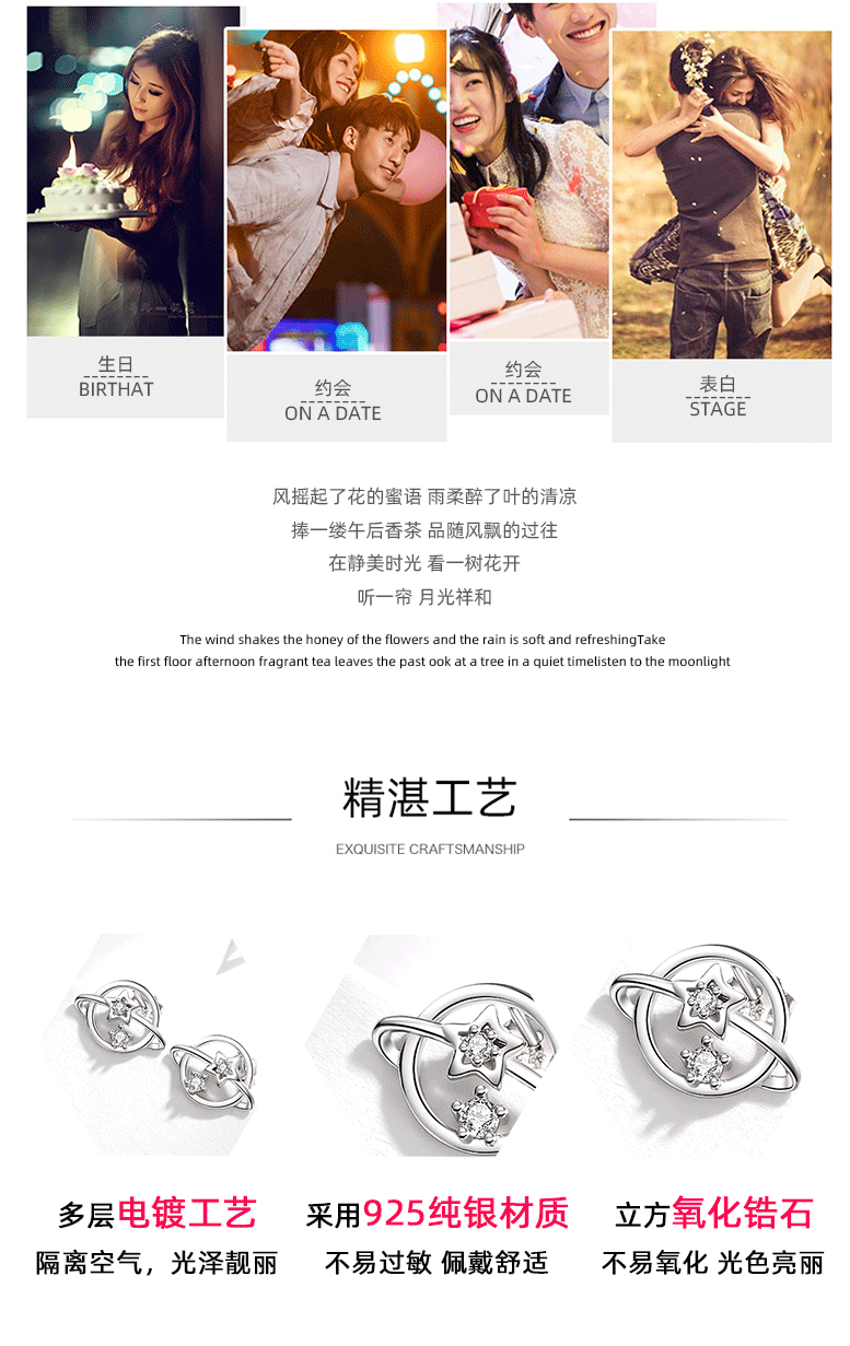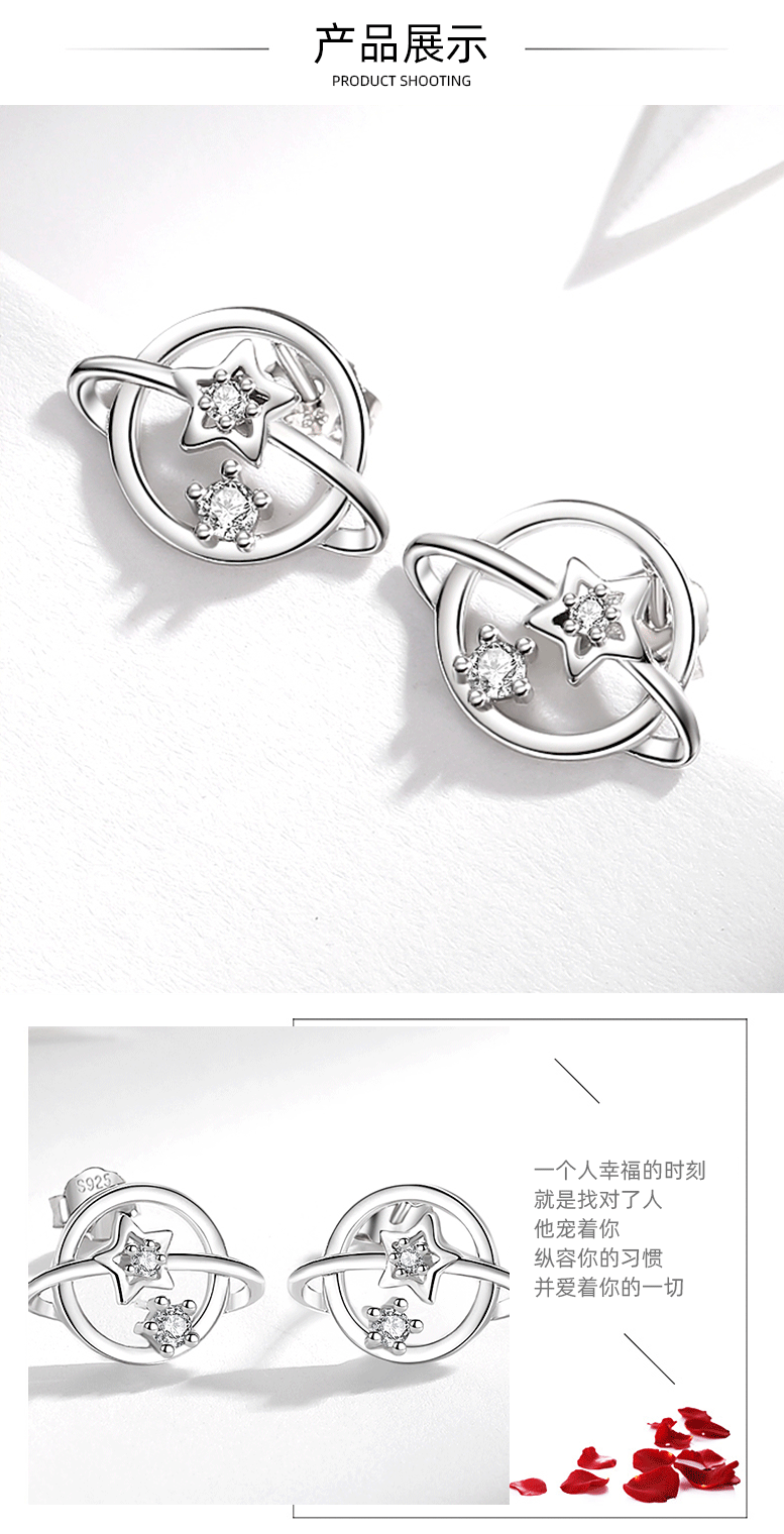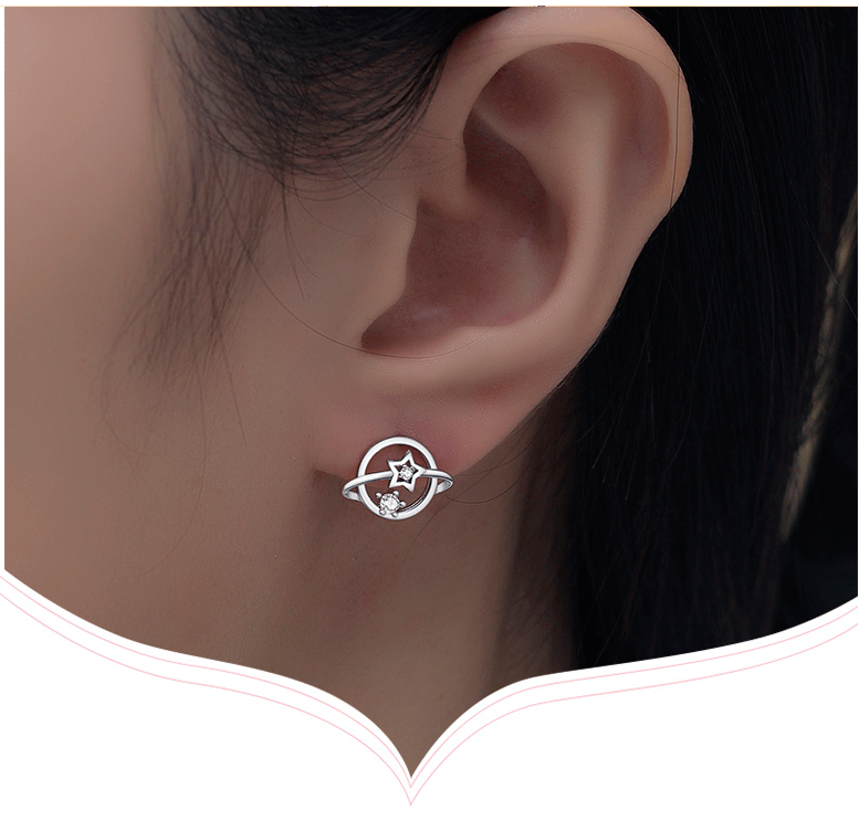 S925 plata esterlina simple estilo japonés y coreano planeta universo estrella Luna pendientes creativos simétricos pendientes personalizados al por mayor