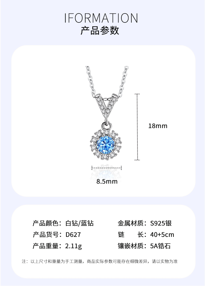 | Color | D627 White Diamond (con cadena cruzada),D627 Blue Diamond (con cadena cruzada) |