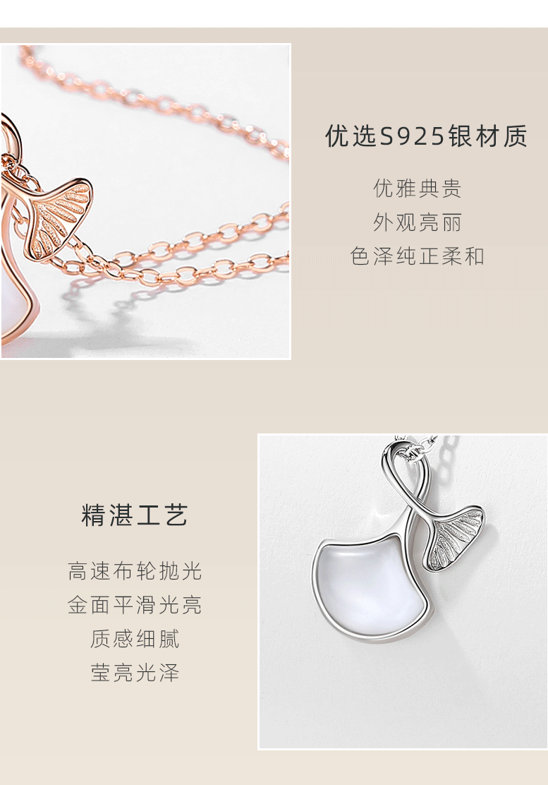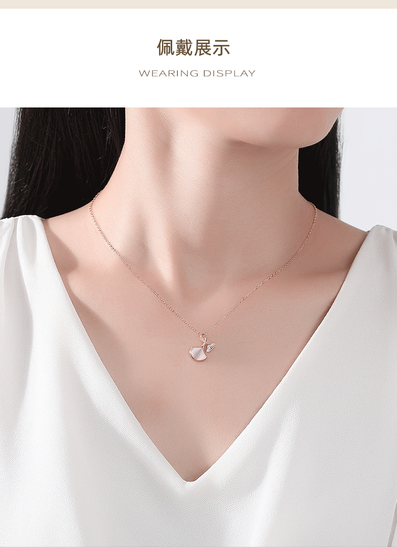 Sansheng Lucky blanco fritillary albaricoque collar de la hoja de las mujeres Luz de lujo simple clavícula cadena sentido s925 plata todo-fósforo de la joyería