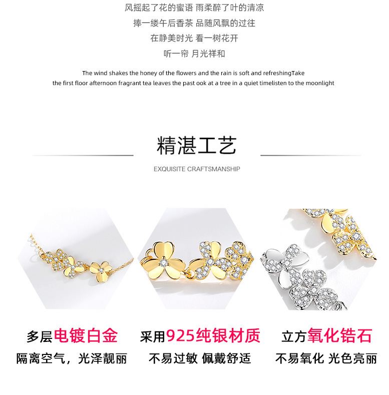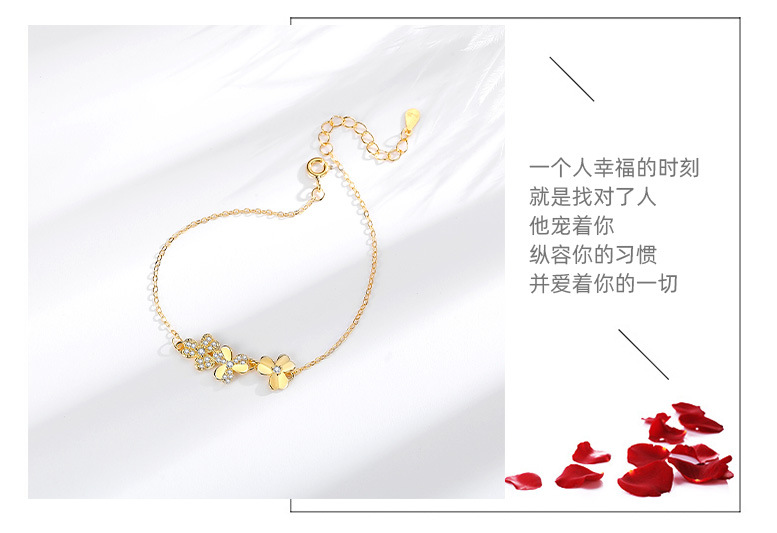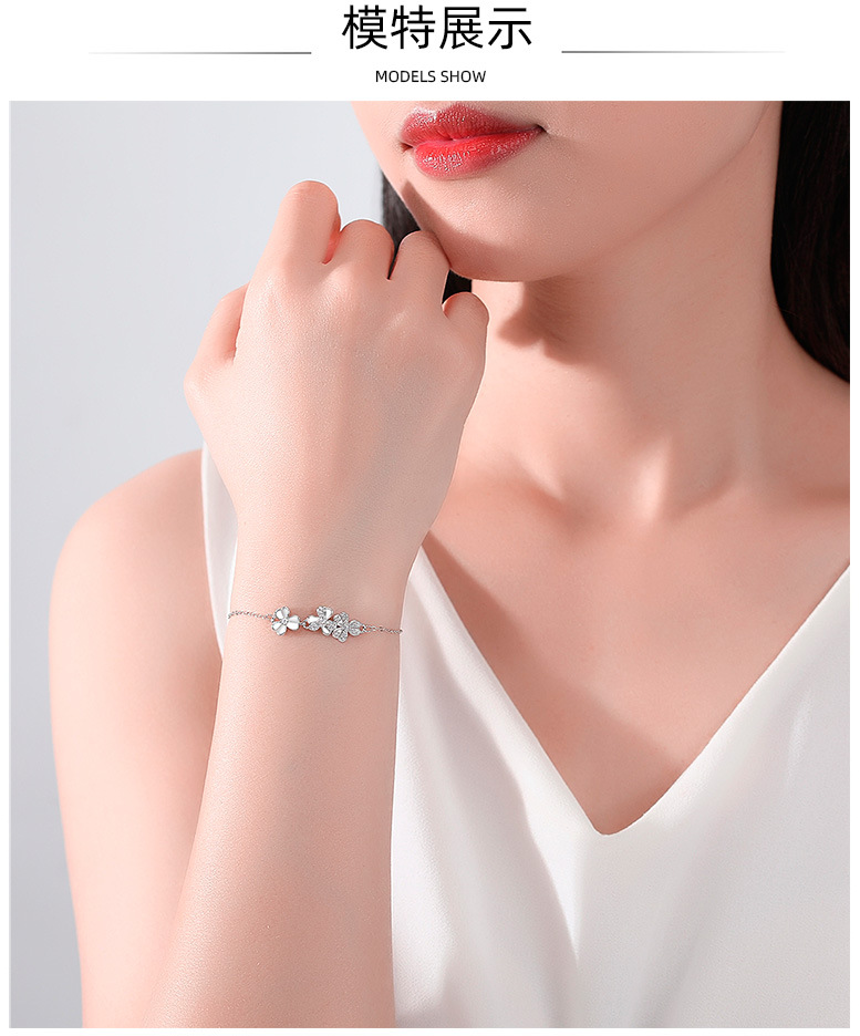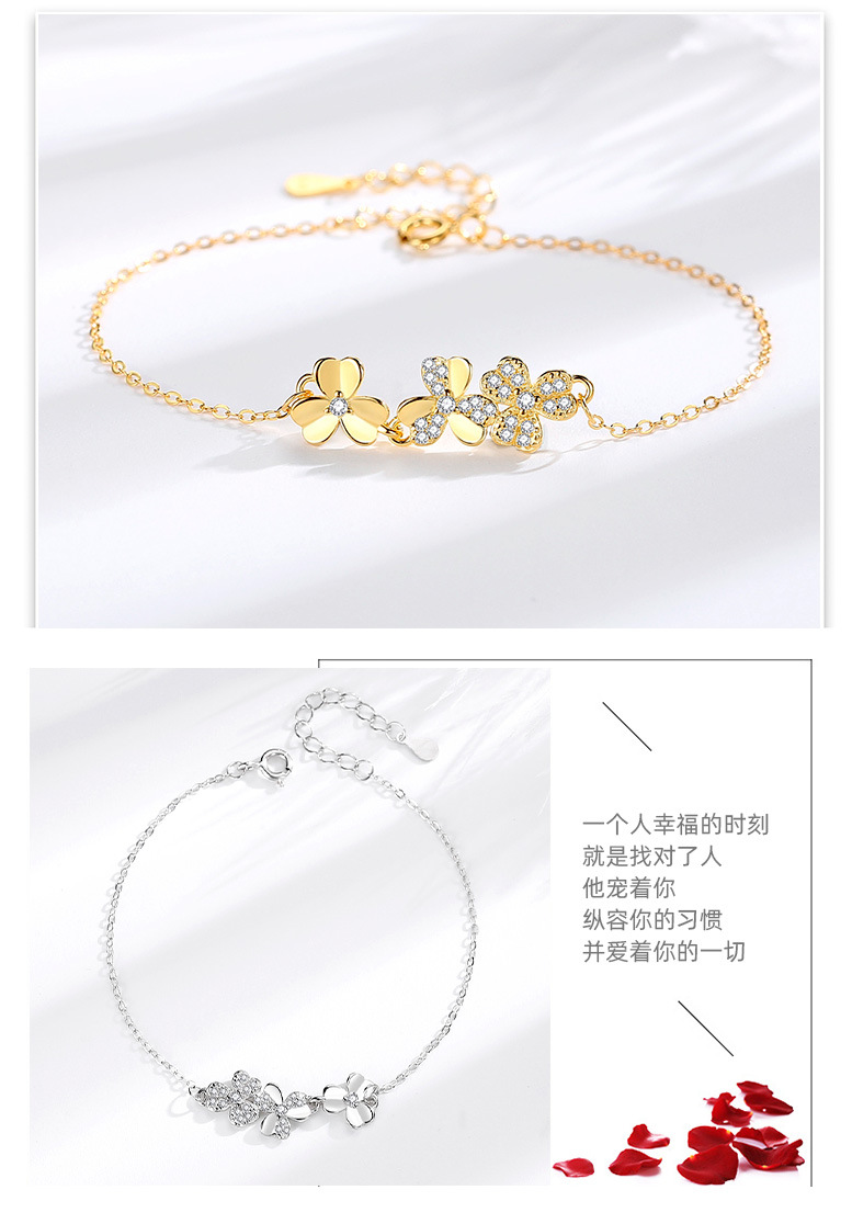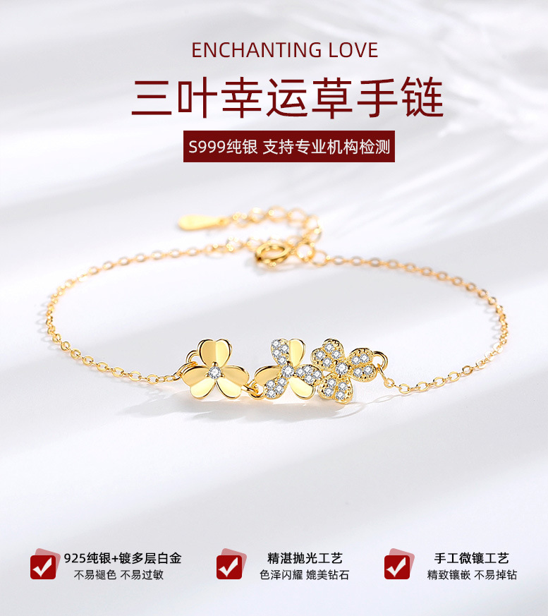 S925 pulsera de tres hojas de plata femenina estilo coreano fresco hoja de ginkgo artístico dulce regalo de joyería para novia